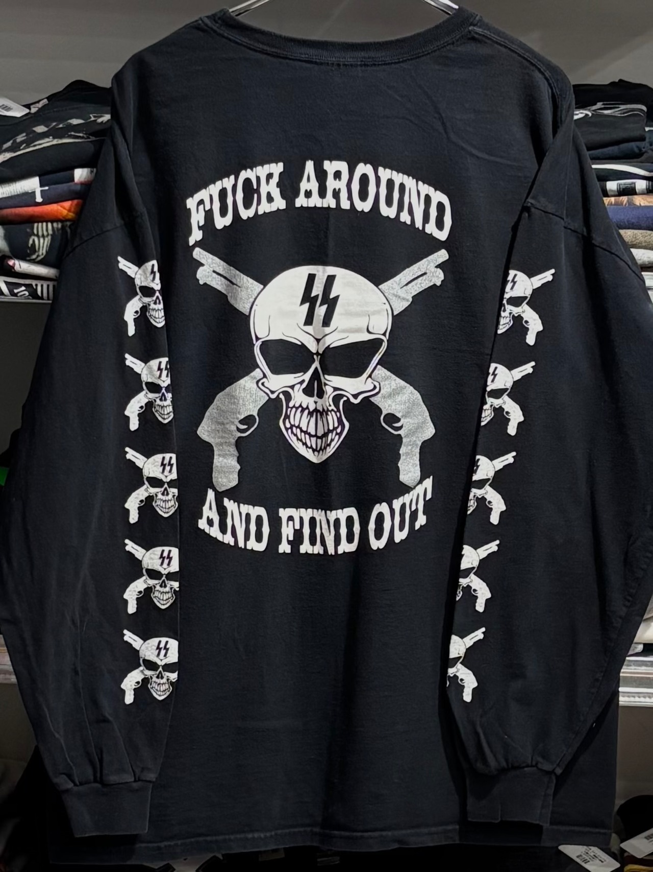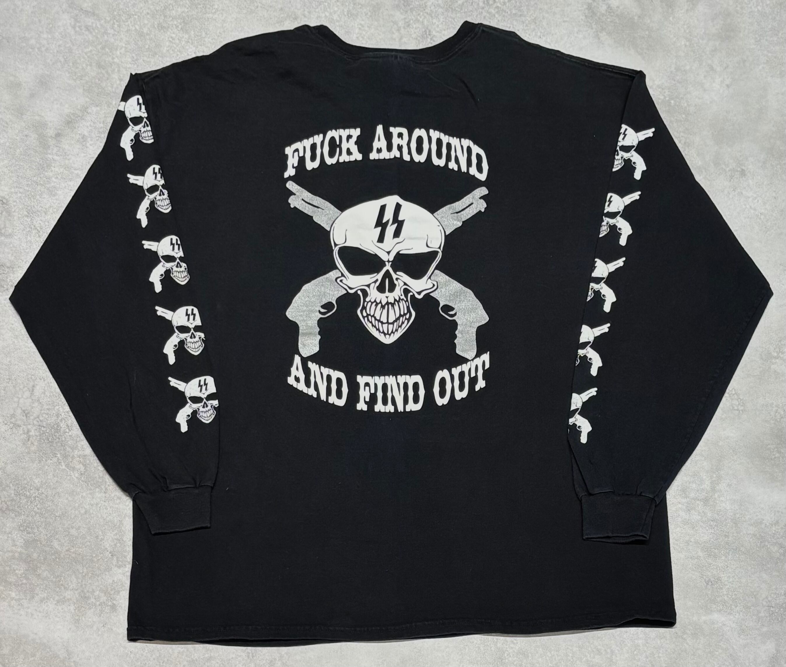 00's Hells Angels FUCK AROUND AND FIND OUT Hanes LS T-Shirt XXL