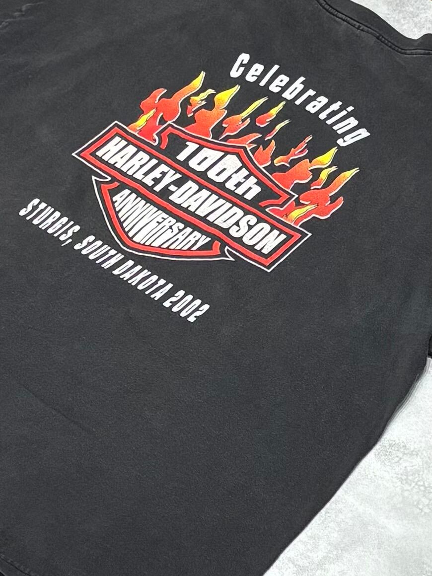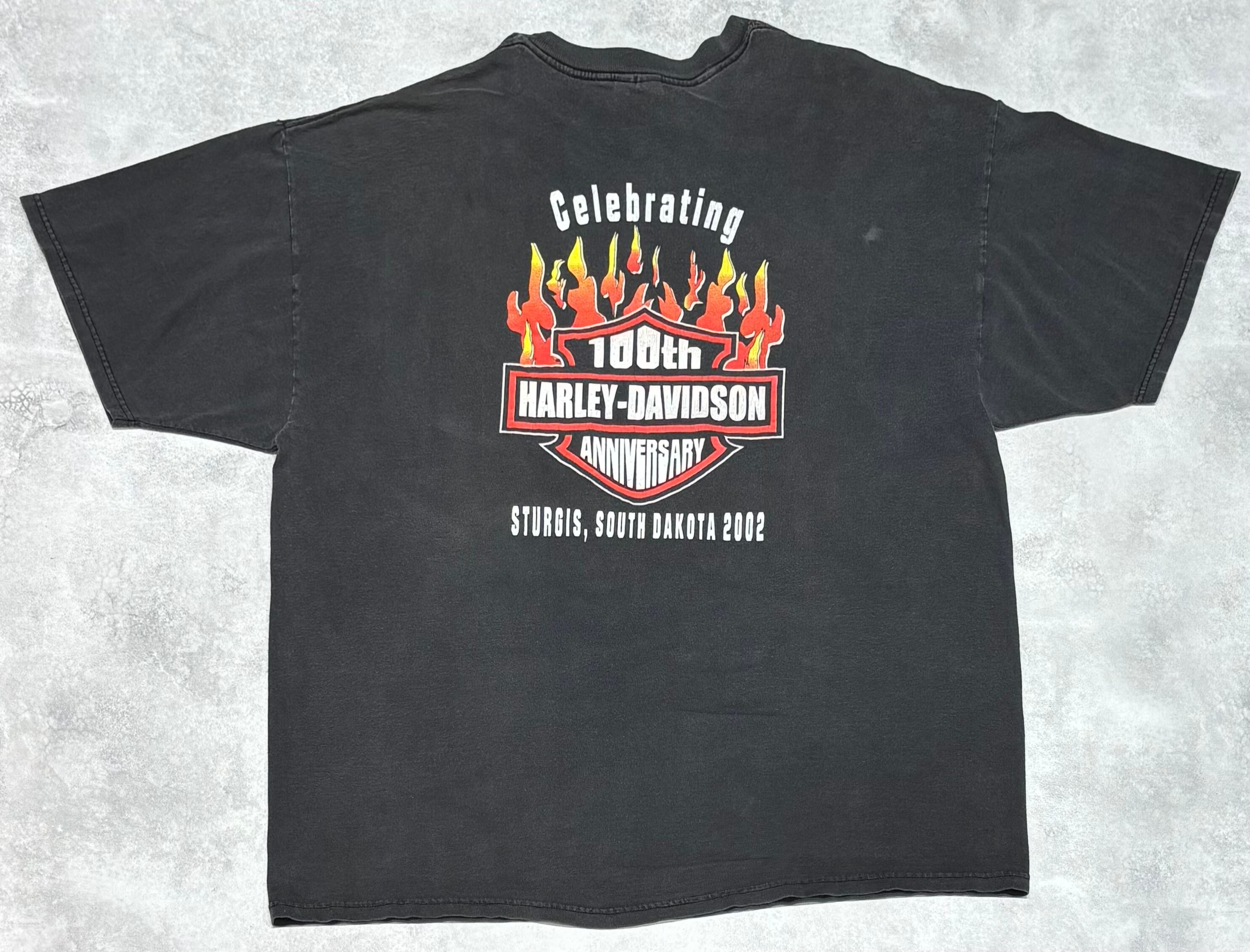 00's Sturgis Eagle Flames 2002 100th Harley-Davidson anniversary Hanes T-Shirt XXL