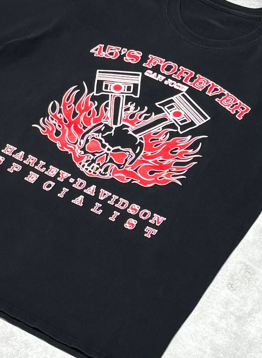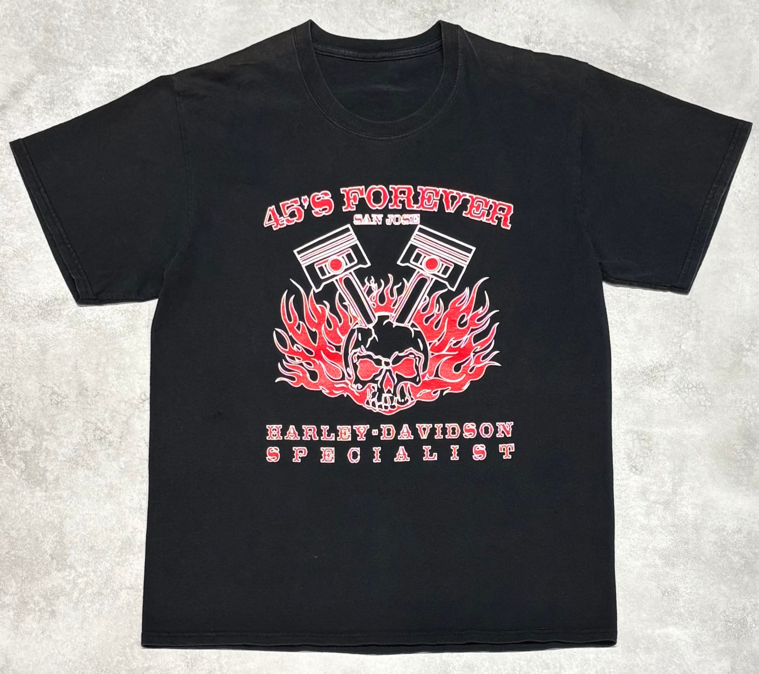 00's 45'sFOREVER SAN JOSE Harley-Davidson SPECIALIST FLAME SKULL T-Shirt