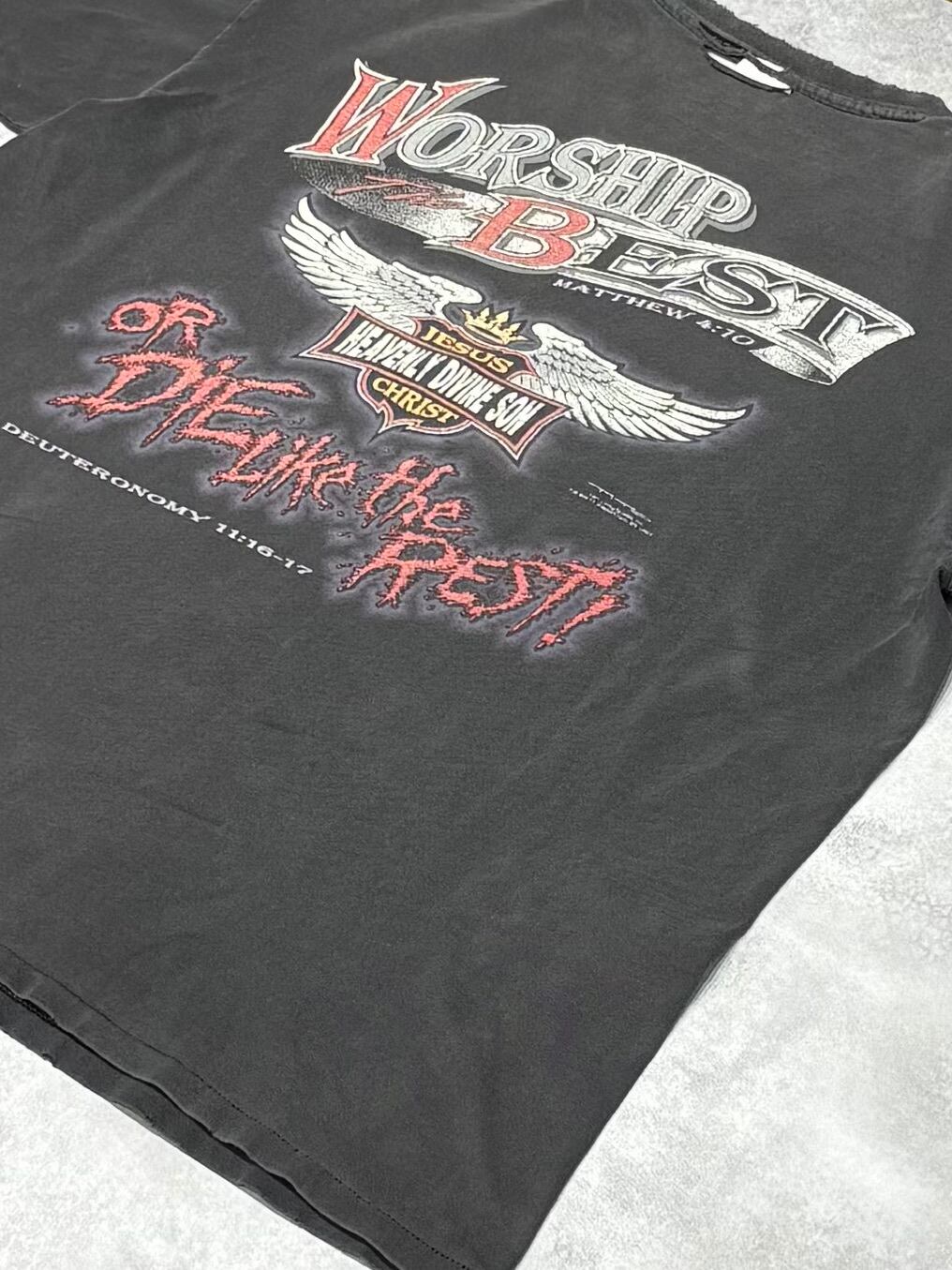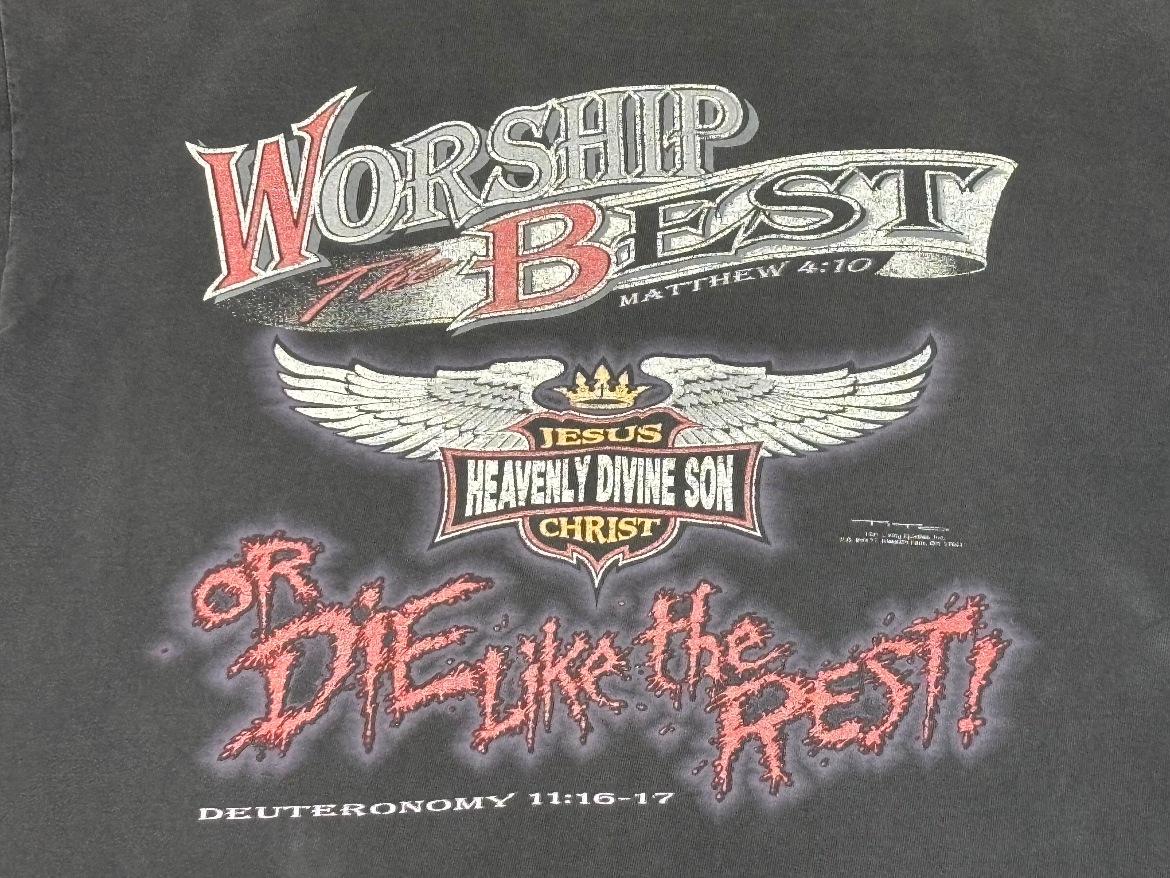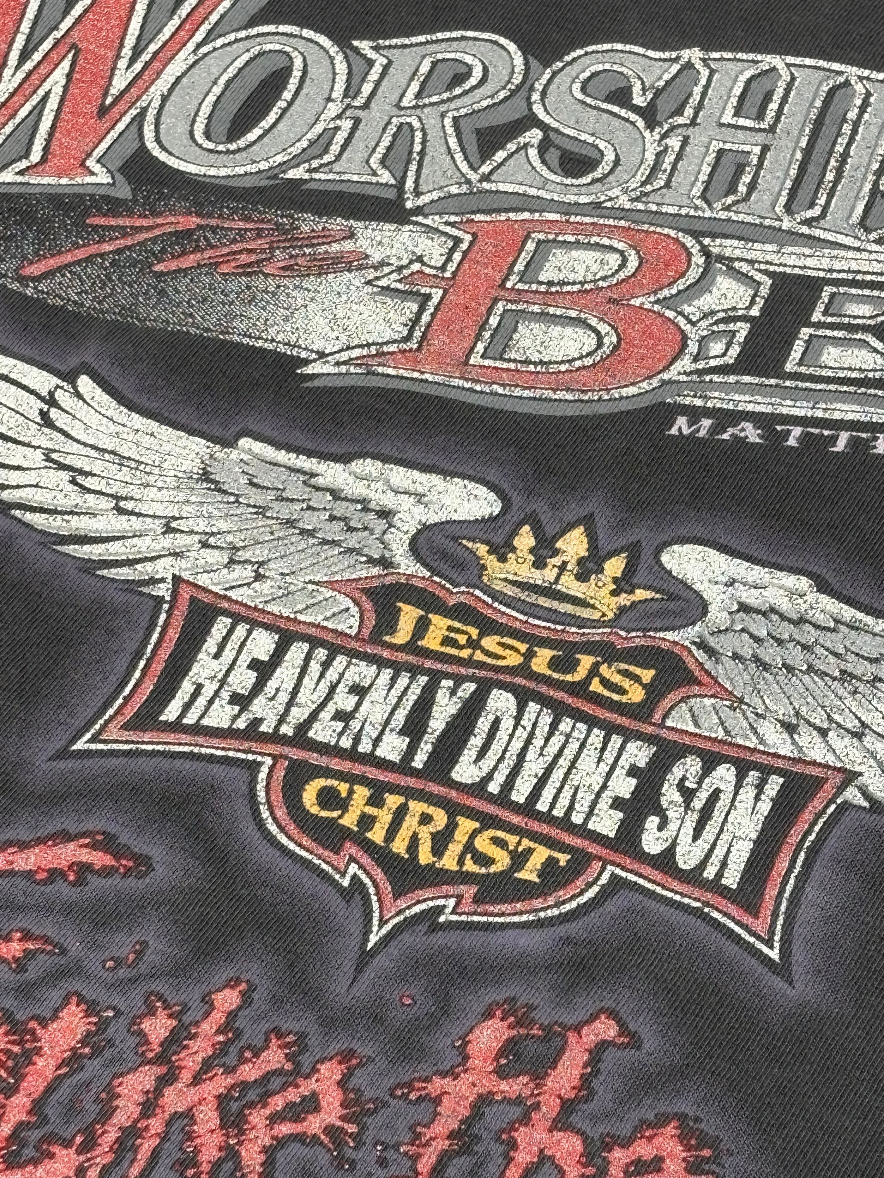 90's JESUS HEAVENLY DIVINESON CHRIST Born to Die T-Shirt XL GOOD FADE ジーザス ハーレー パロディ グッドフェード
