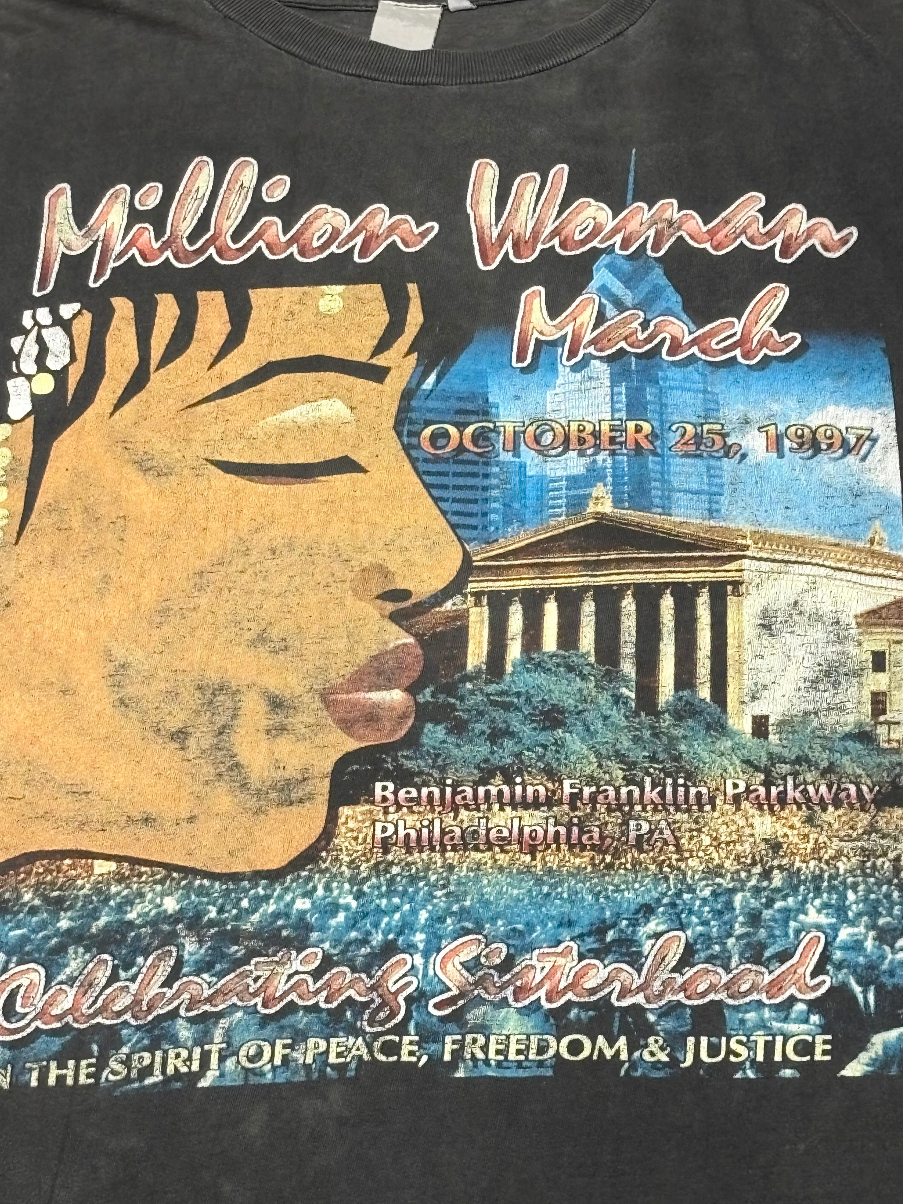 90's MILLION WOMAN MARCH 1997 RAP DESIGN THE POWER OF SISTERHOOD GOOD FADE T-Shirt