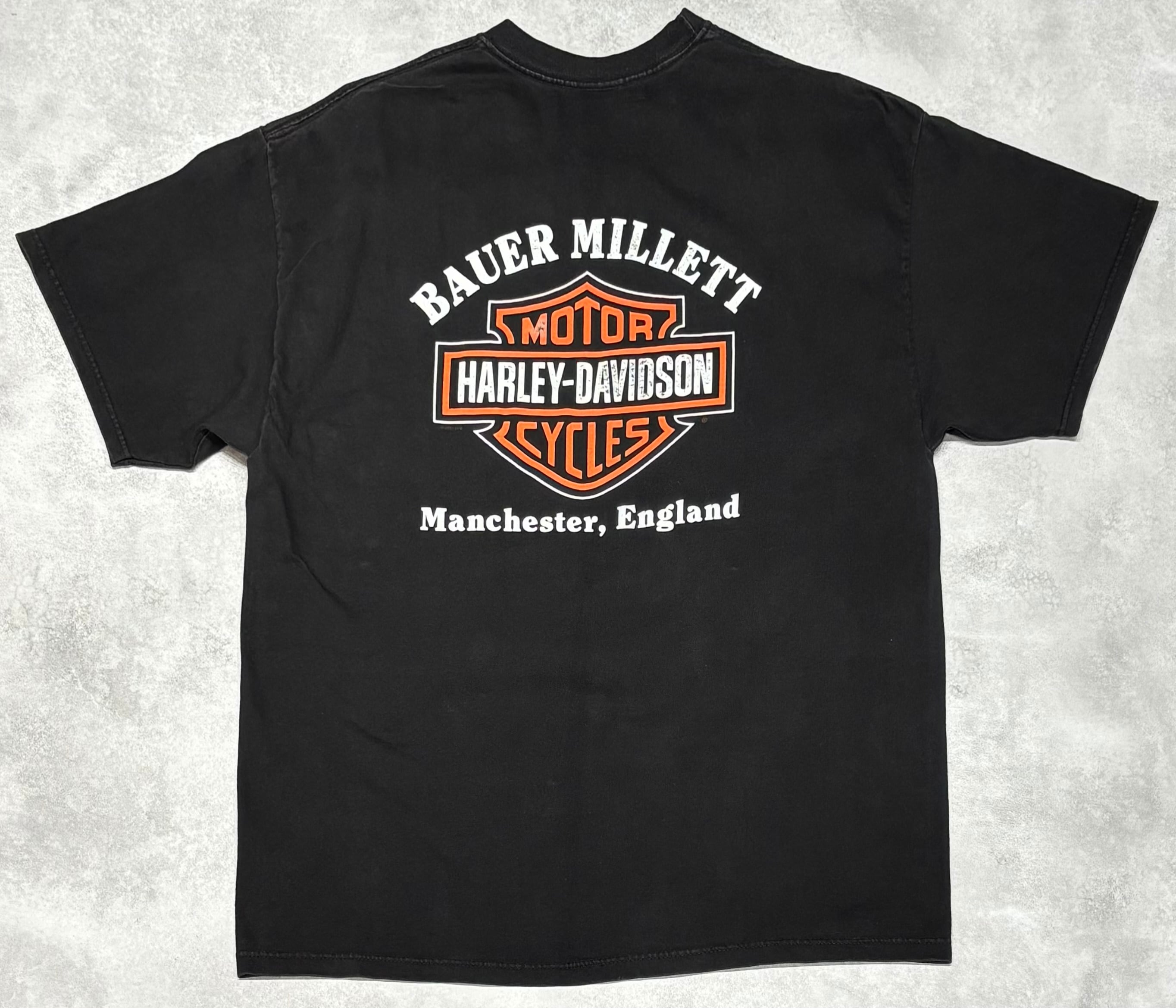 00's Harley-Davidson England Manchester Flame Engine Hanes XL T-Shirt