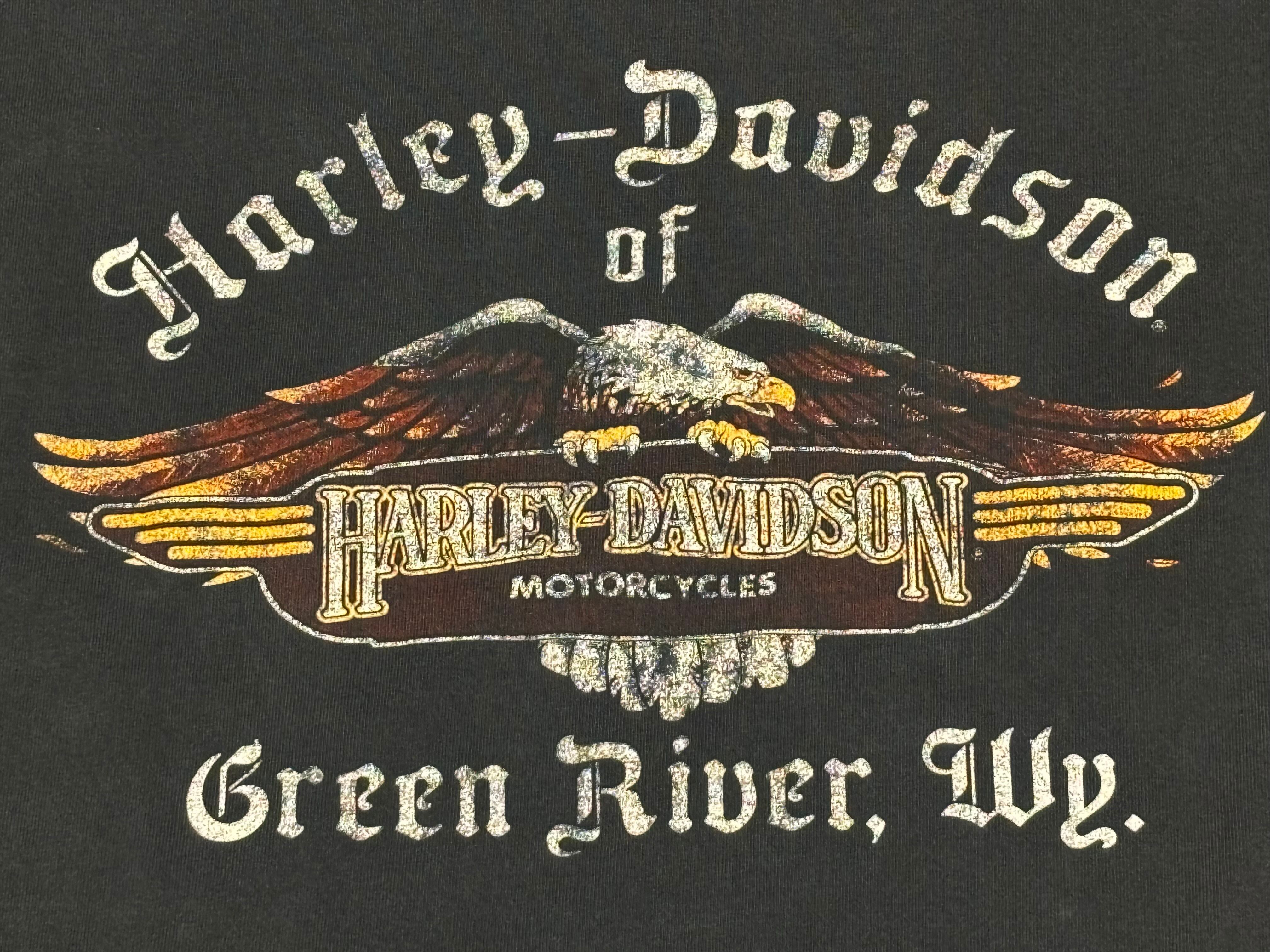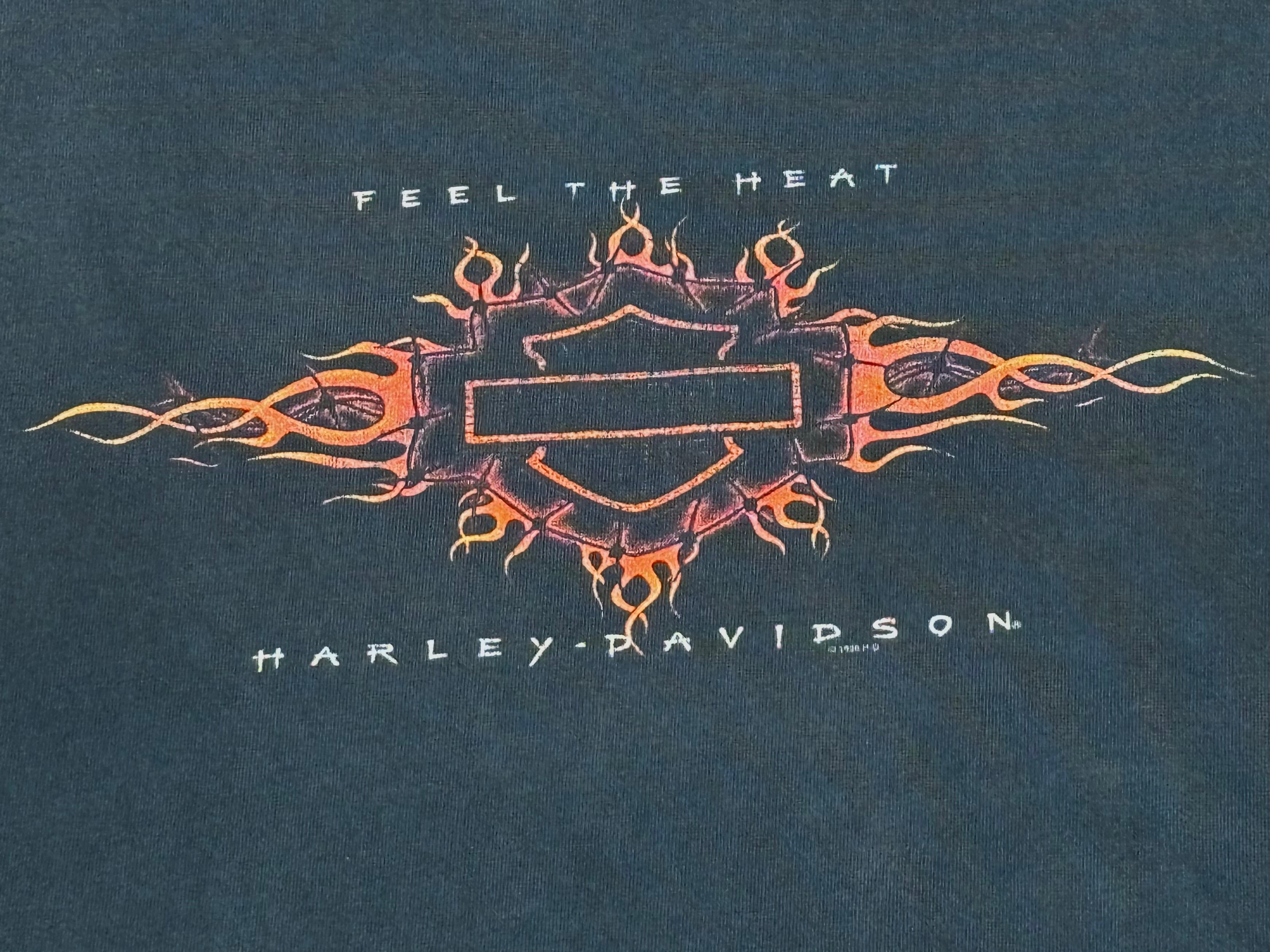 00's Harley-Davidson Flames LS T-Shirt XL FEEL THE HEAT Eagle Green River