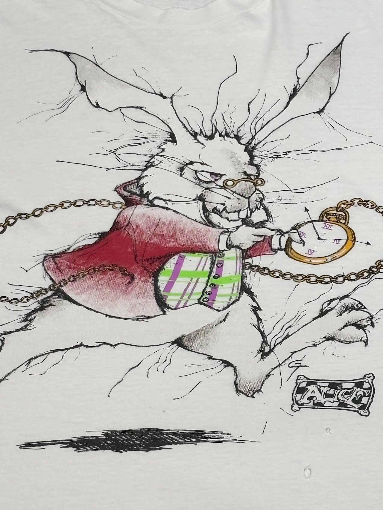 90's Alice in Wonderland White Rabbit ANDAZIA XL T-Shirt 不思議の国 アリス 白うさぎ 90年代