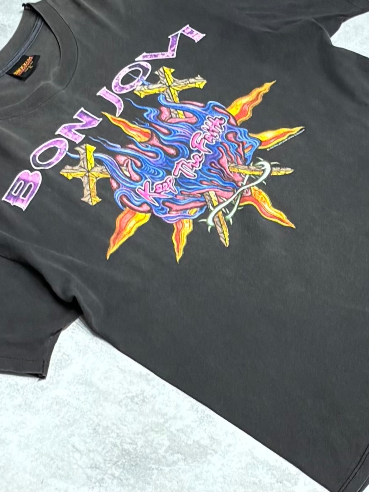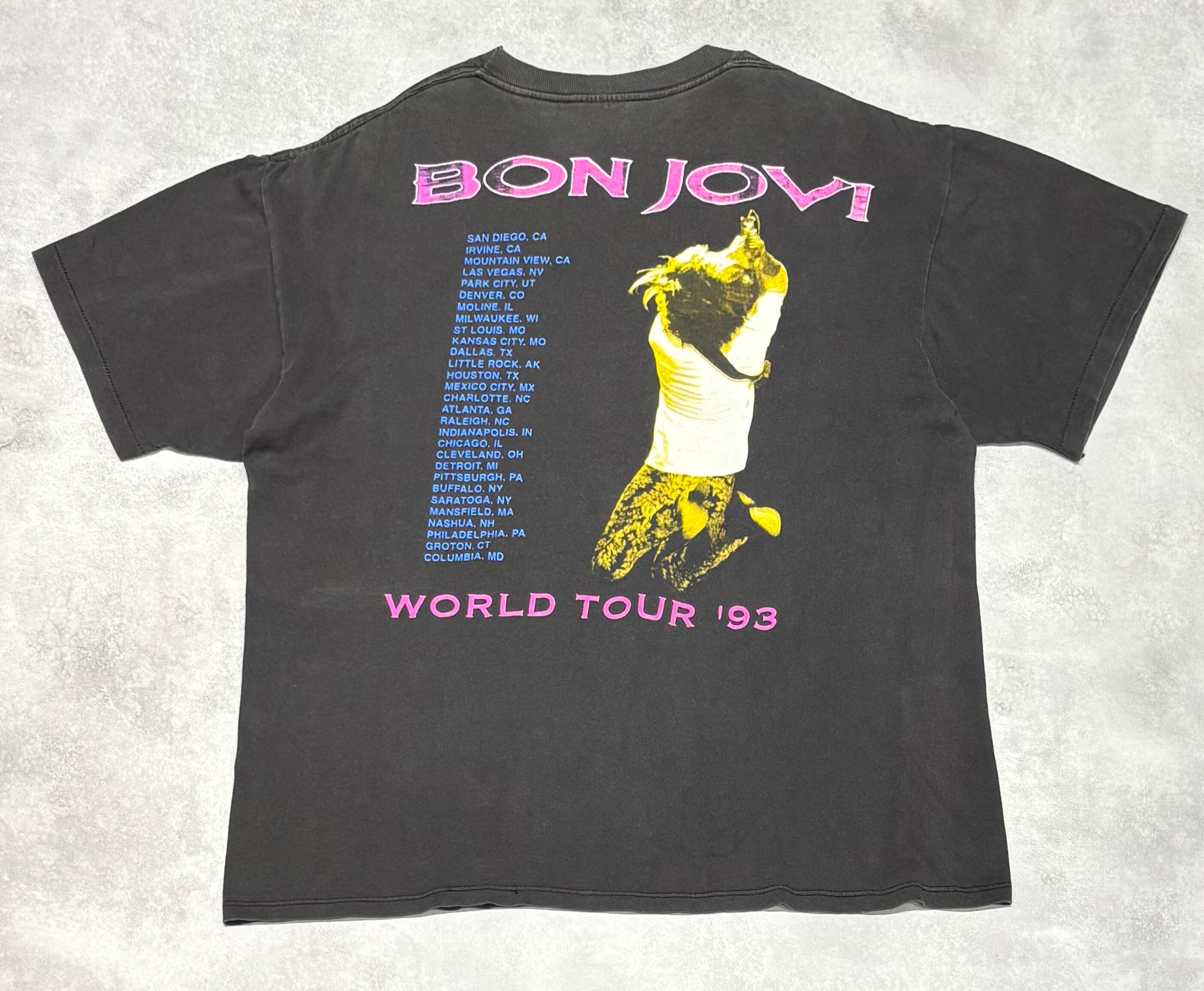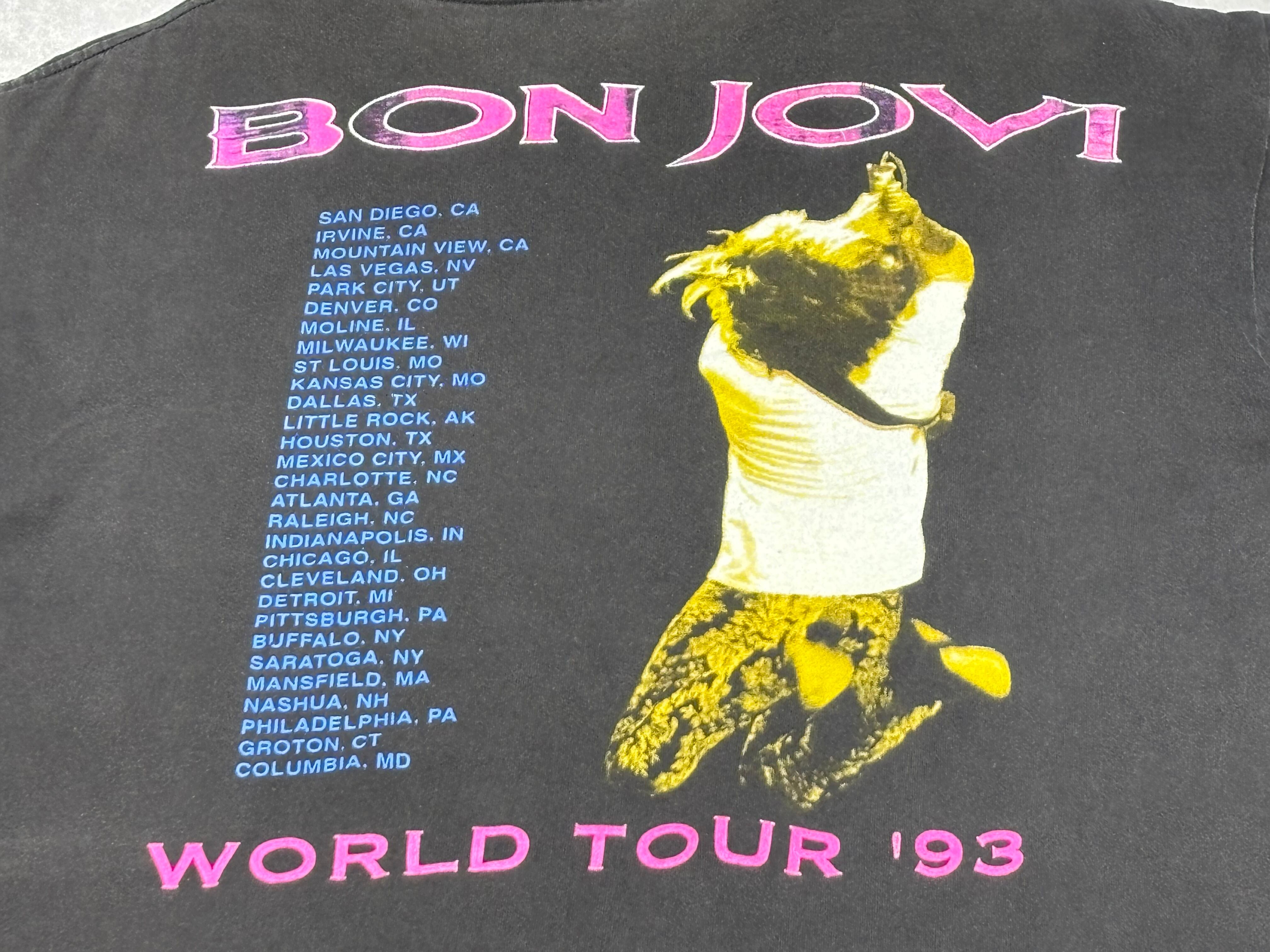 90's BON JOVI KEEP THE FAITH WORLD TOUR 1993 BROCKUM XL T-Shirt GOOD FADE