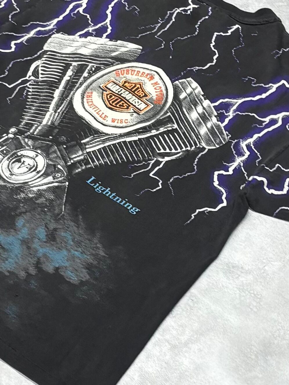 90's Harley-Davidson Thunder & Lightning Hanes XL T-Shirt OVP ハーレー サンダー tシャツ THUNDER & LIGHTNING