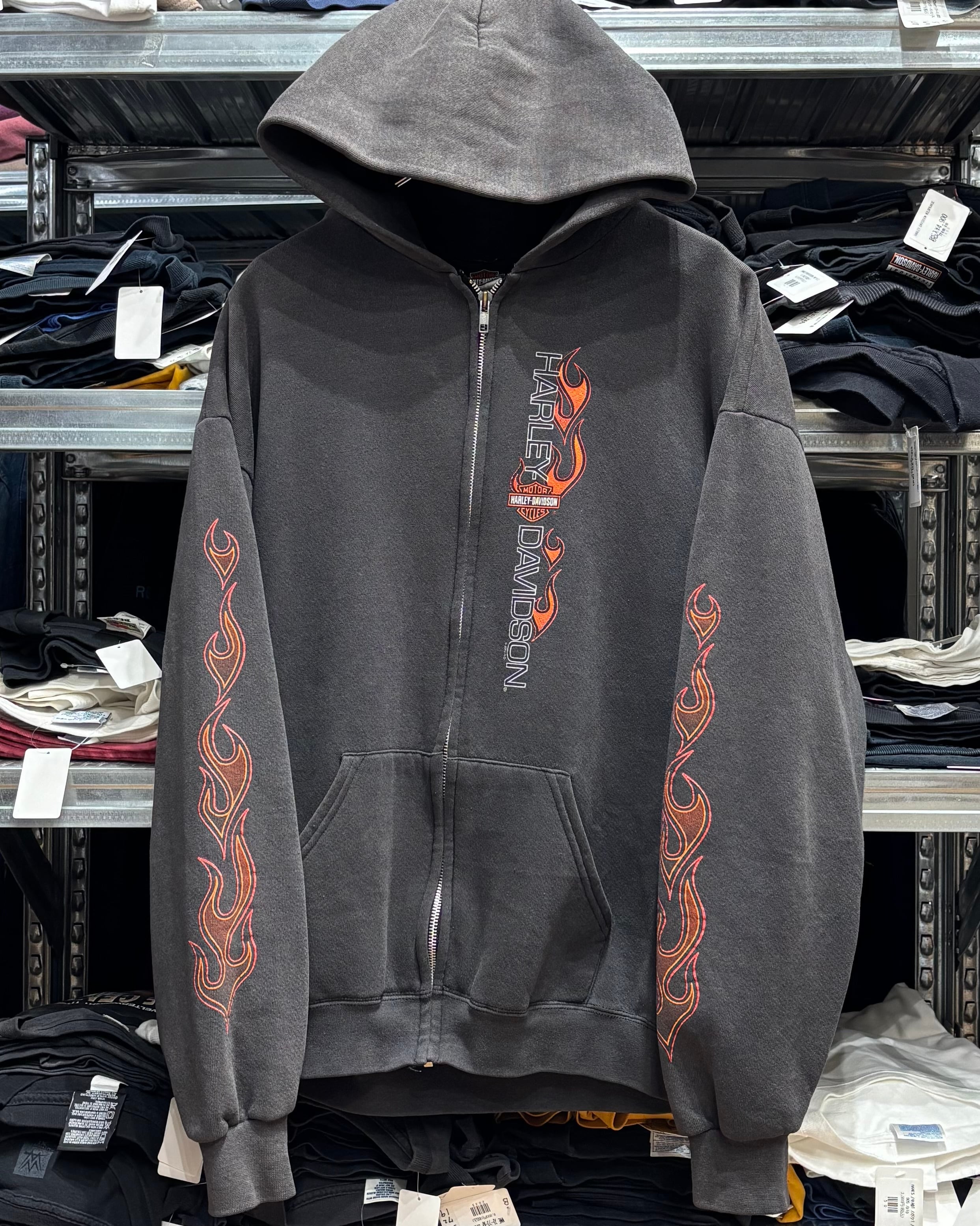 00's Harley-Davidson Zip Hoodie LARGE Flame Bar&Shield DOC'Sハーレー パーカー 長袖 フーディ スウェット フレイム ジップ