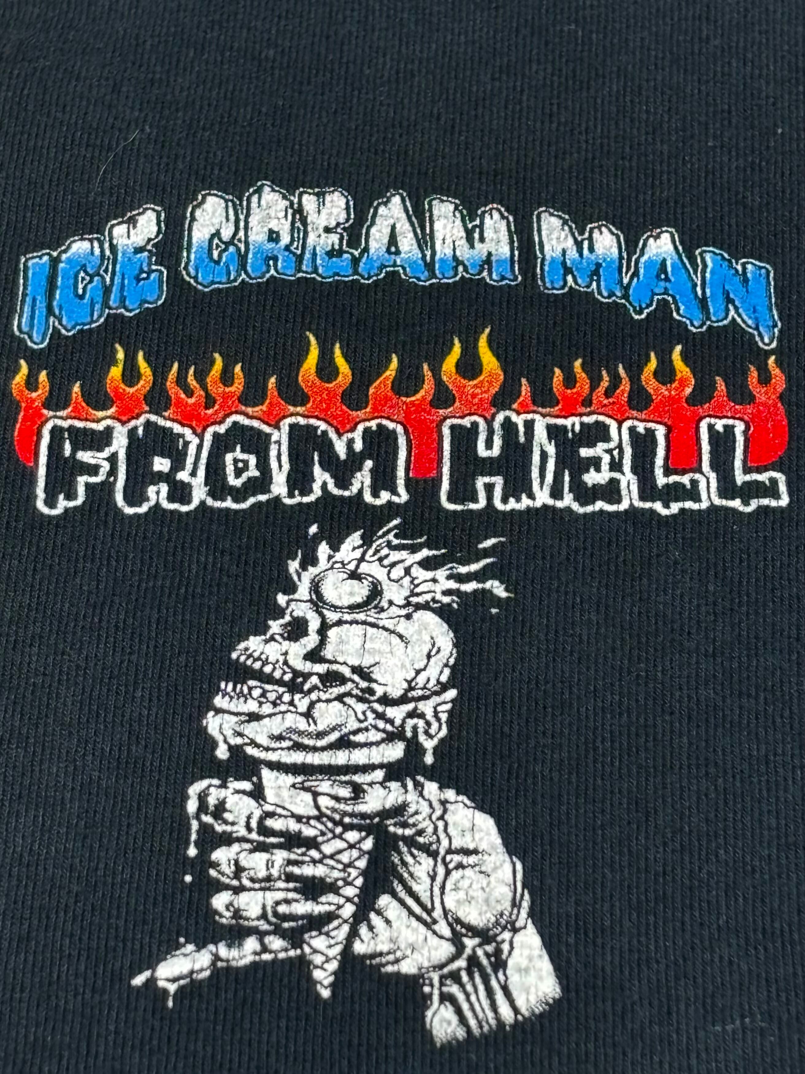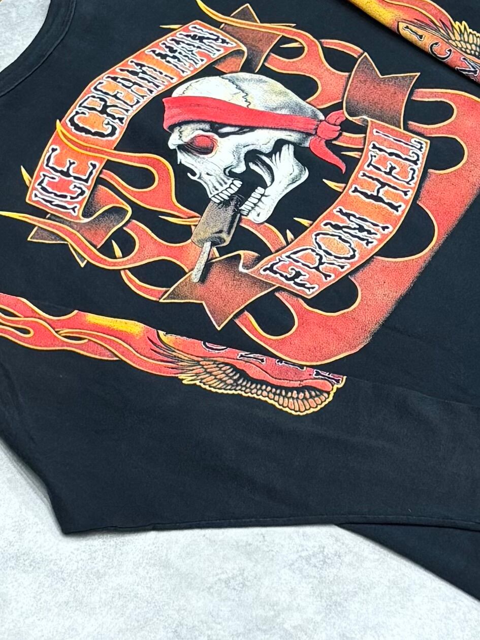 90's ice cream man from hell jim trotta COTTON DELUXE Henley neck long sleeve T-shirt XL Flame madein USA アイスクリームマン ロンT 長袖 フレイム 90年代