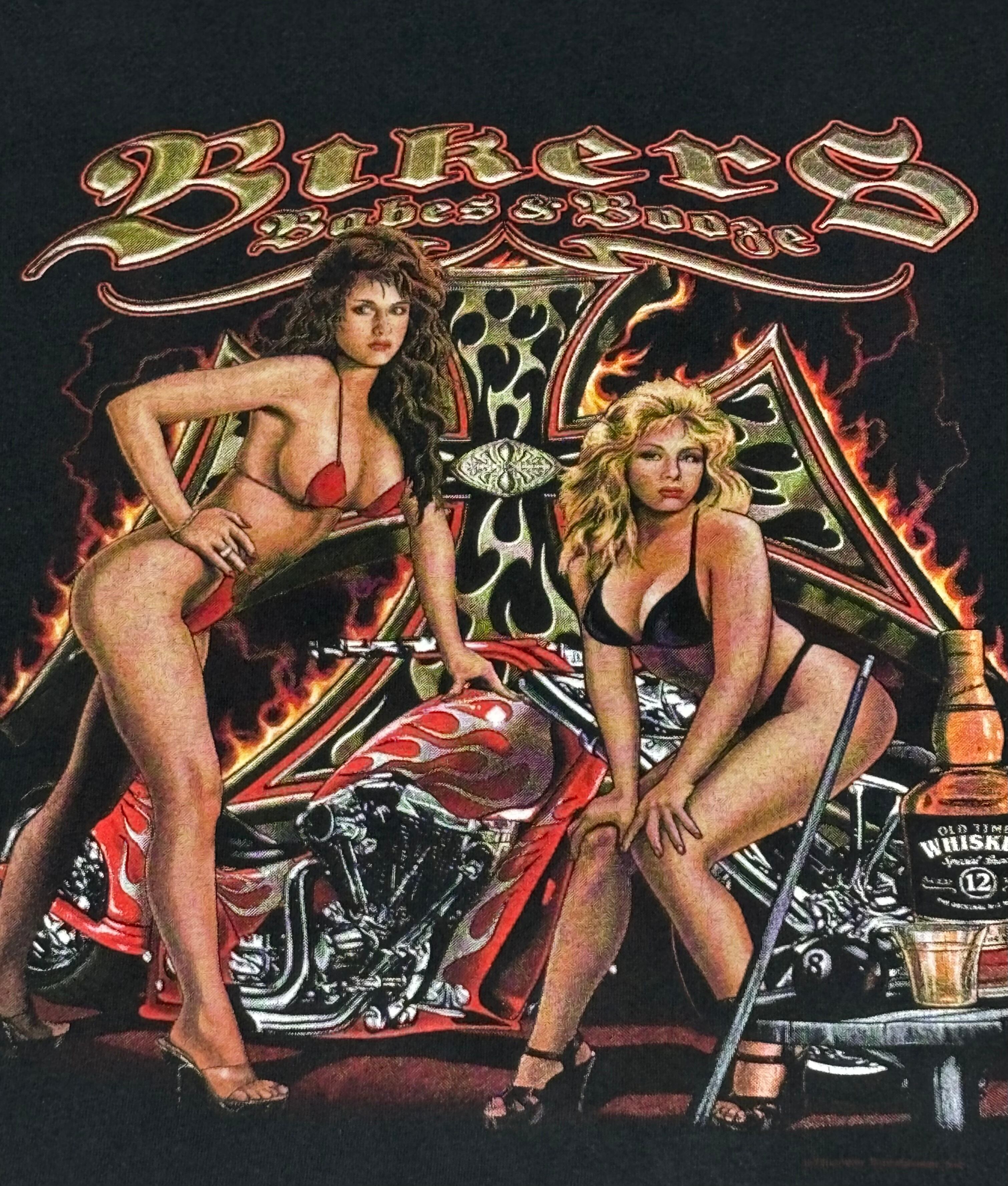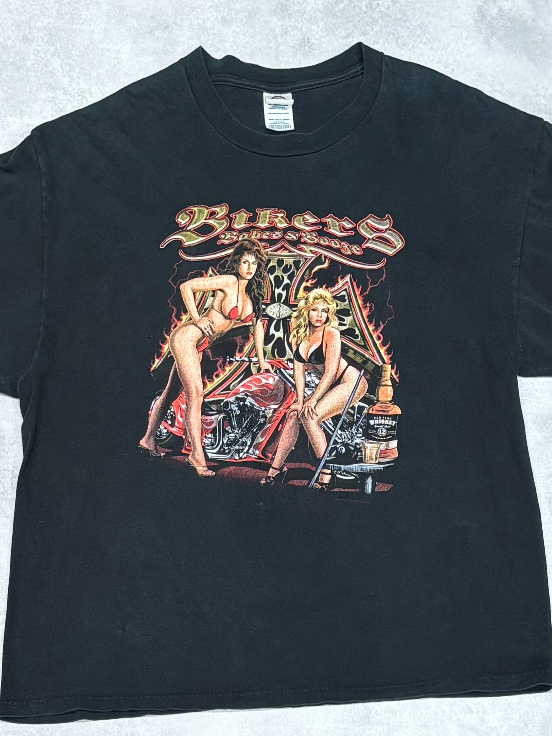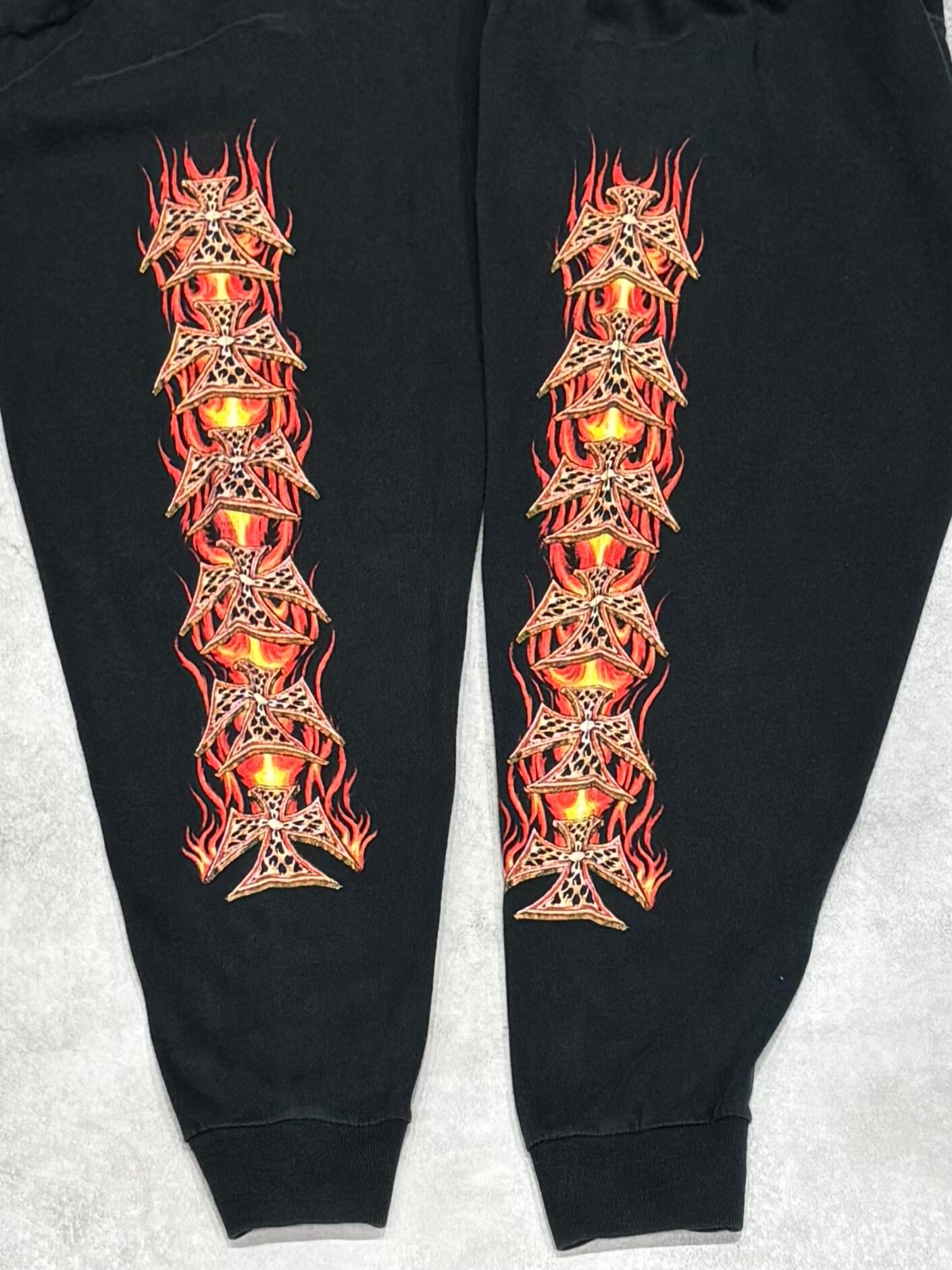 00's Thunder sportwear bikers Babes Iron Cross Leopard Flame Long sleeve T-shirt DELTA XXL ロンT 長袖 アイアンクロス レオパード フレイム