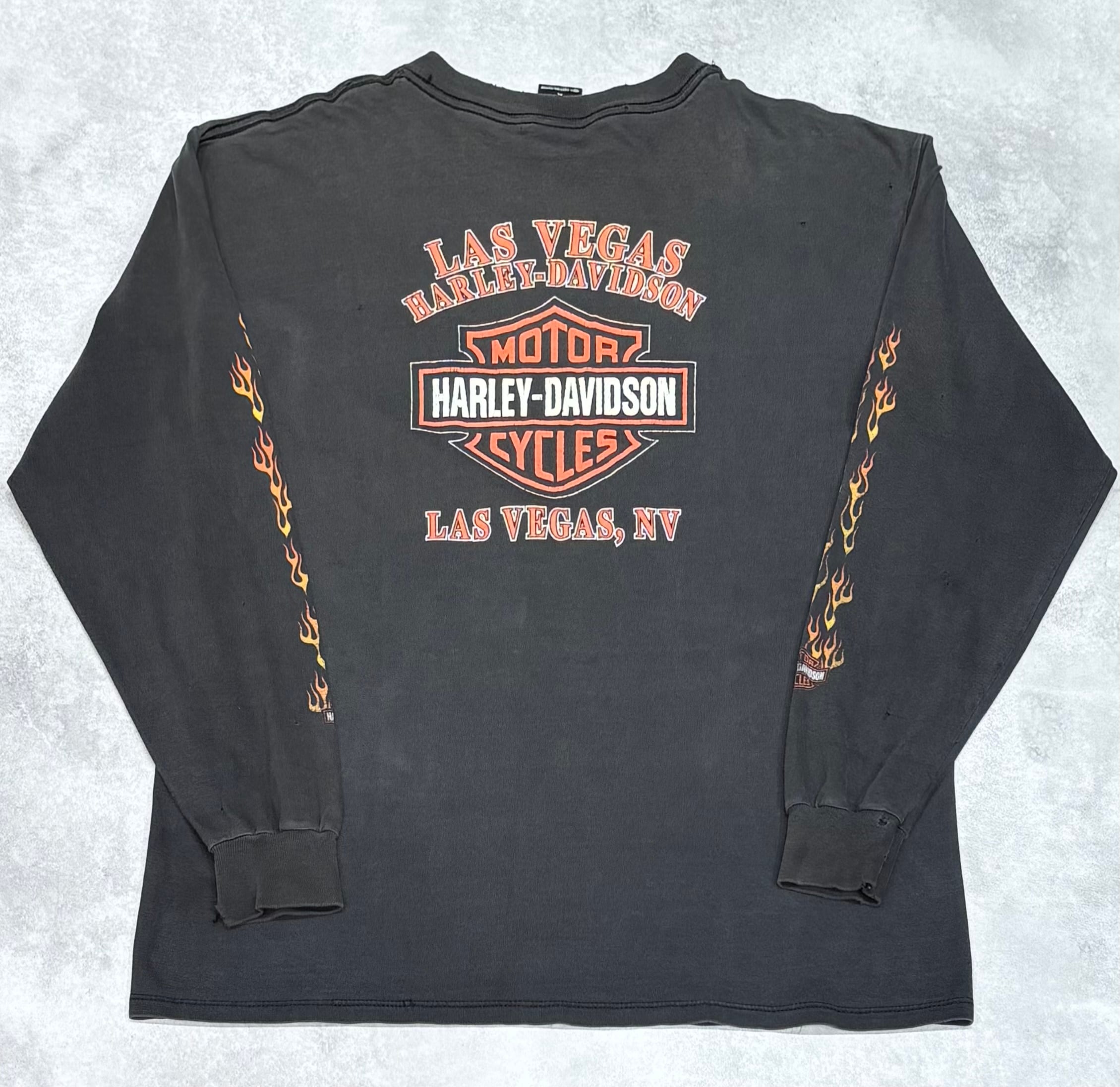 00's Harley-Davidson Pocket Long Sleeve T-Shirt XL Flame Good Fade LAS VEGAS ©️2000 ハーレー ロンT 長袖 ポケット フレイム ラスベガス