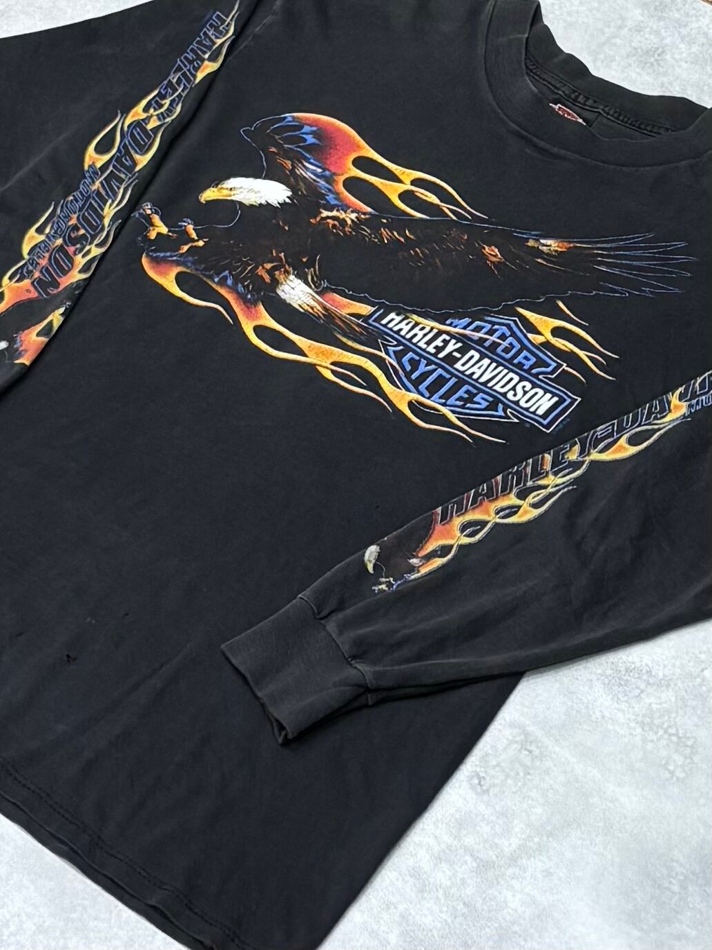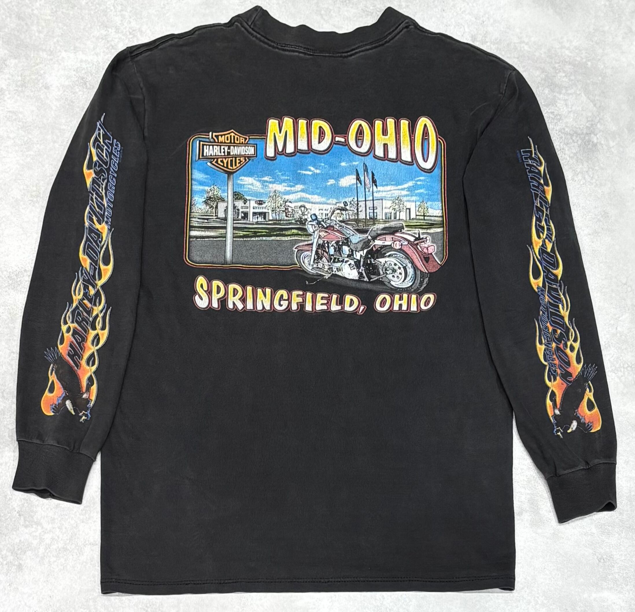 00's Harley-Davidson Eagle Flames Purple Bar&Shield Good Fade Long sleeve T-shirt M OHIO ハーレー フレイム イーグル 長袖 ロンT
