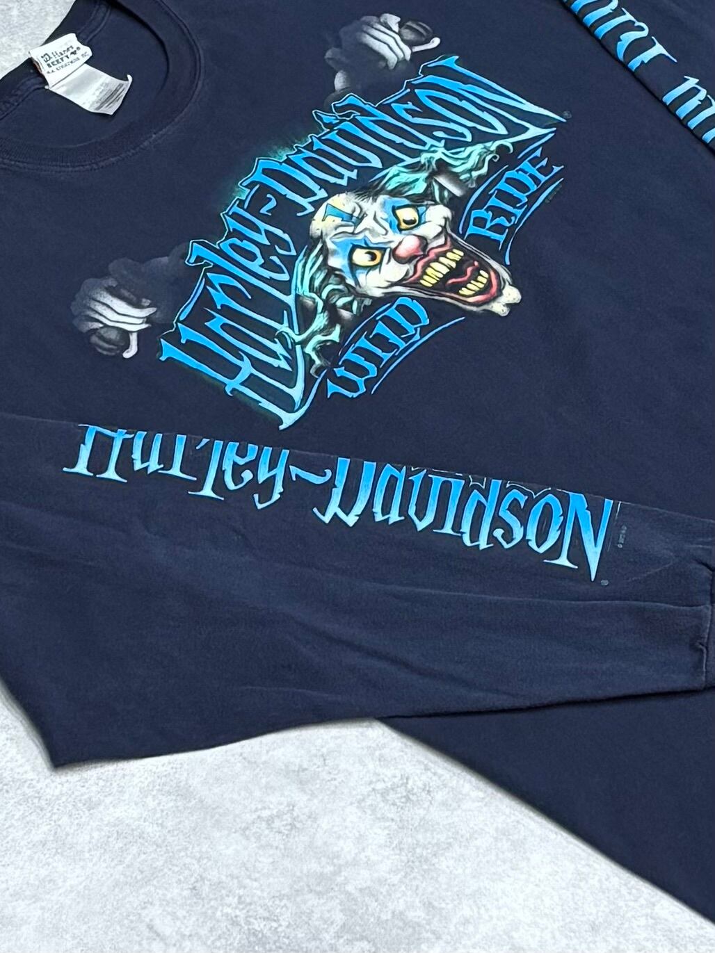 00's Harley-Davidson Crazy Clown WILD RIDE Long sleeve T-shirt Hanes XXL ハーレー ピエロ ロンT 長袖 3160