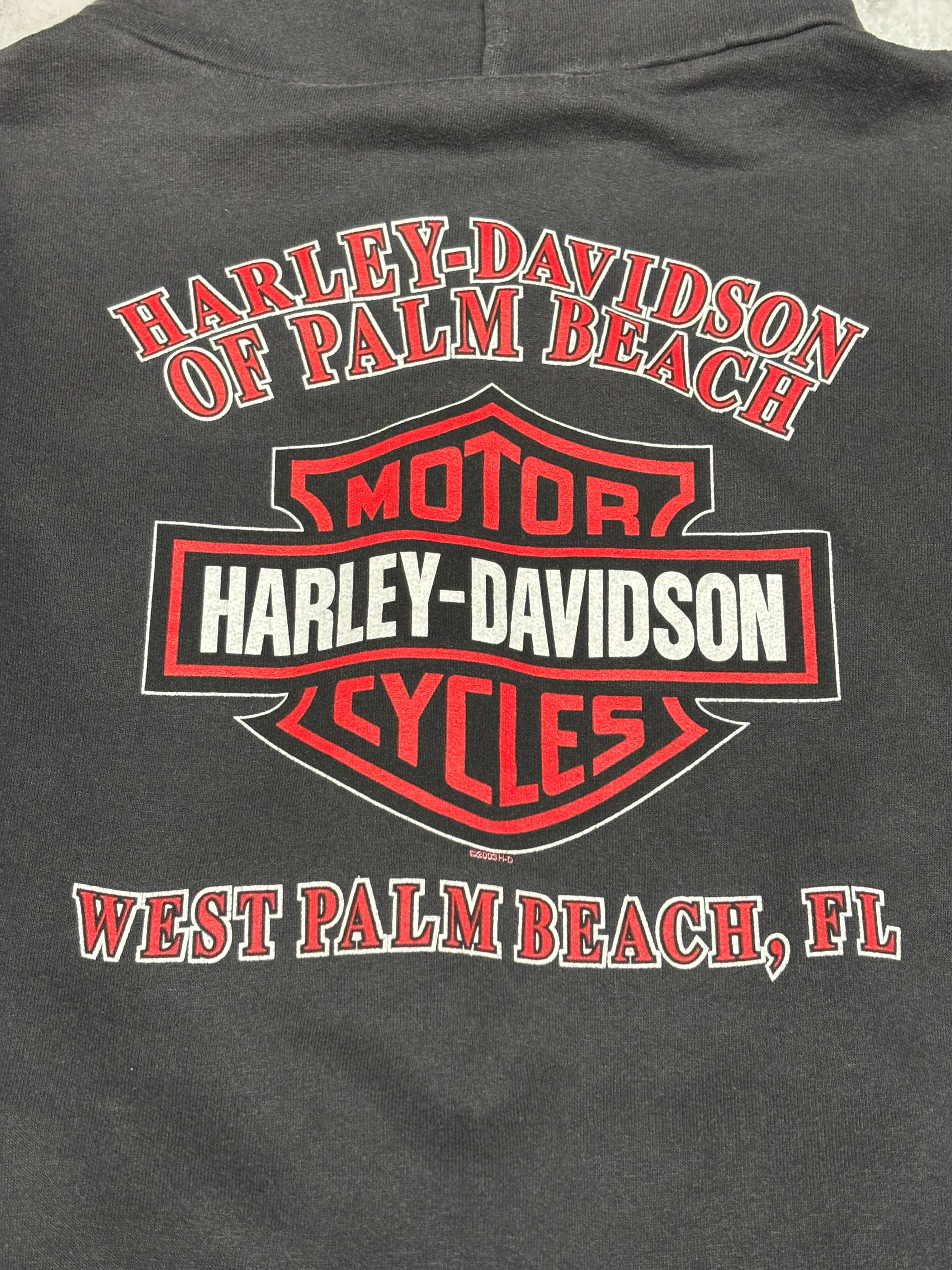 【M】00's Harley-Davidson Zip Hoodie Flame WEST PALM BEACH Bar&Shield ハーレー パーカー 長袖 フーディ スウェット フレイム ジップ 3147