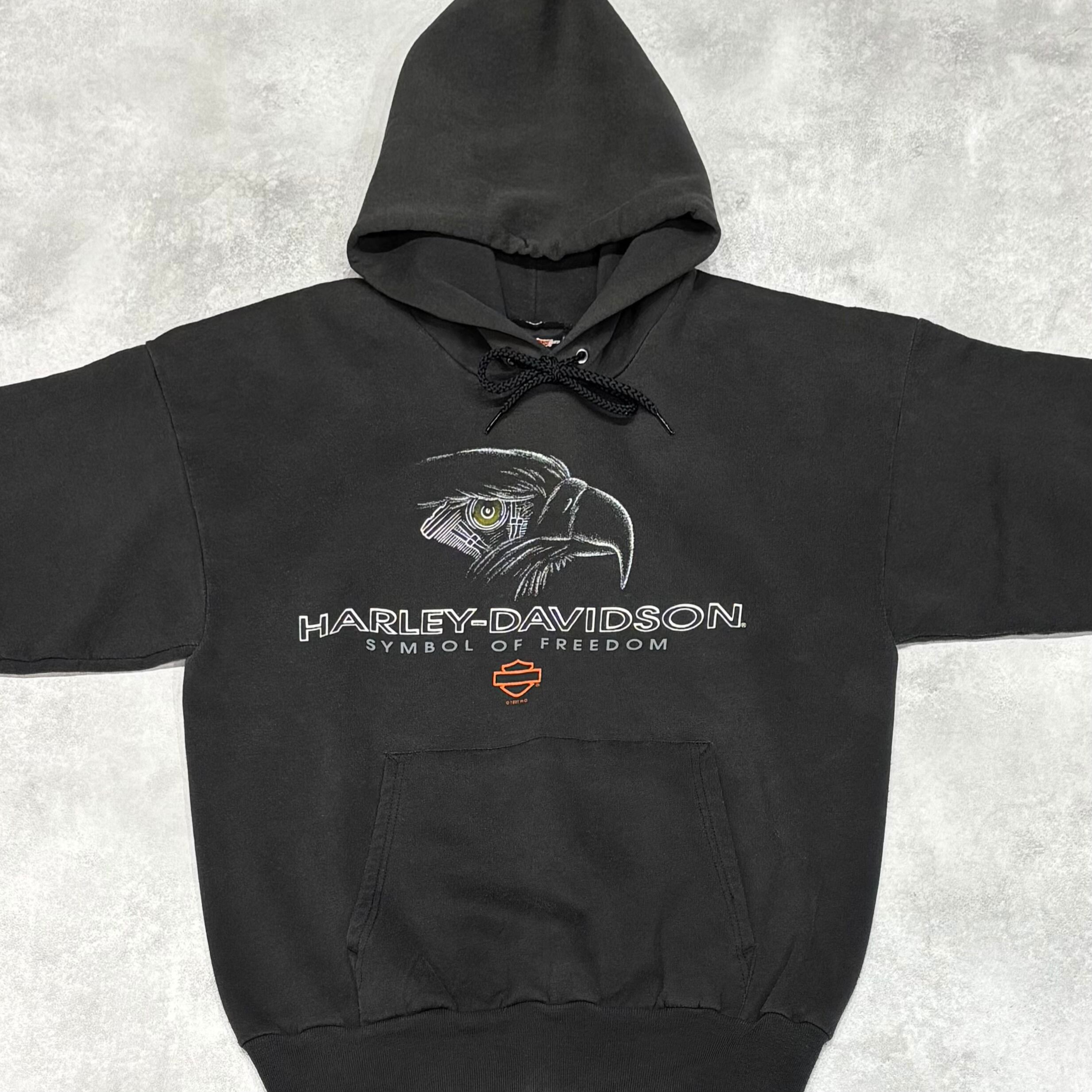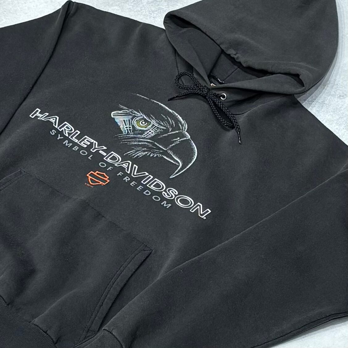 90-00's Harley-Davidson SYMBOL OF FREEDOM Hanes LARGE Hoodie BLACK ハーレー ヘインズ パーカー 黒 ブラック プルオーバー