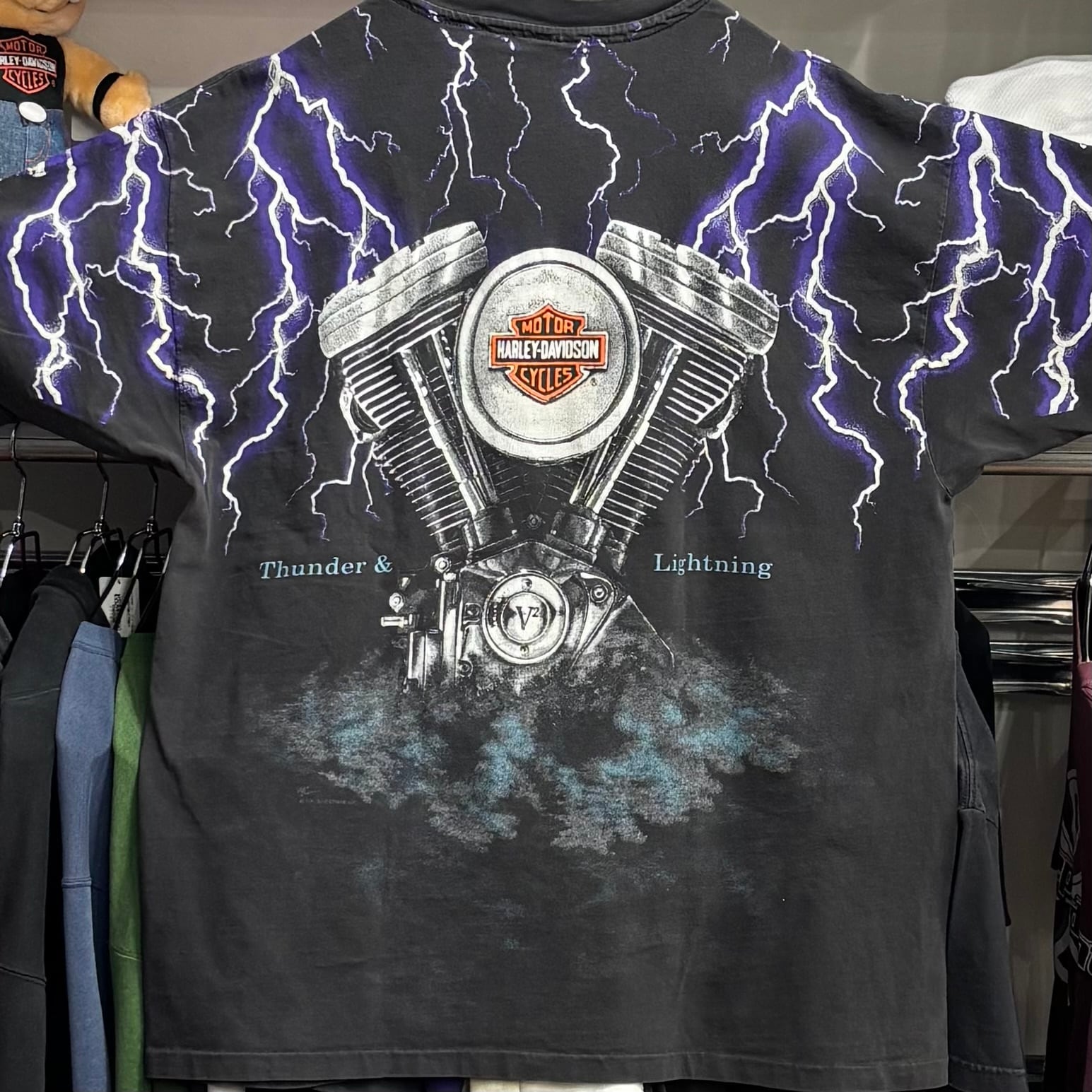 XXL 90's Harley-Davidson Thunder & Lightning Hanes Good Fade T-Shirt OVP ハーレー サンダー tシャツ THUNDER & LIGHTNING
