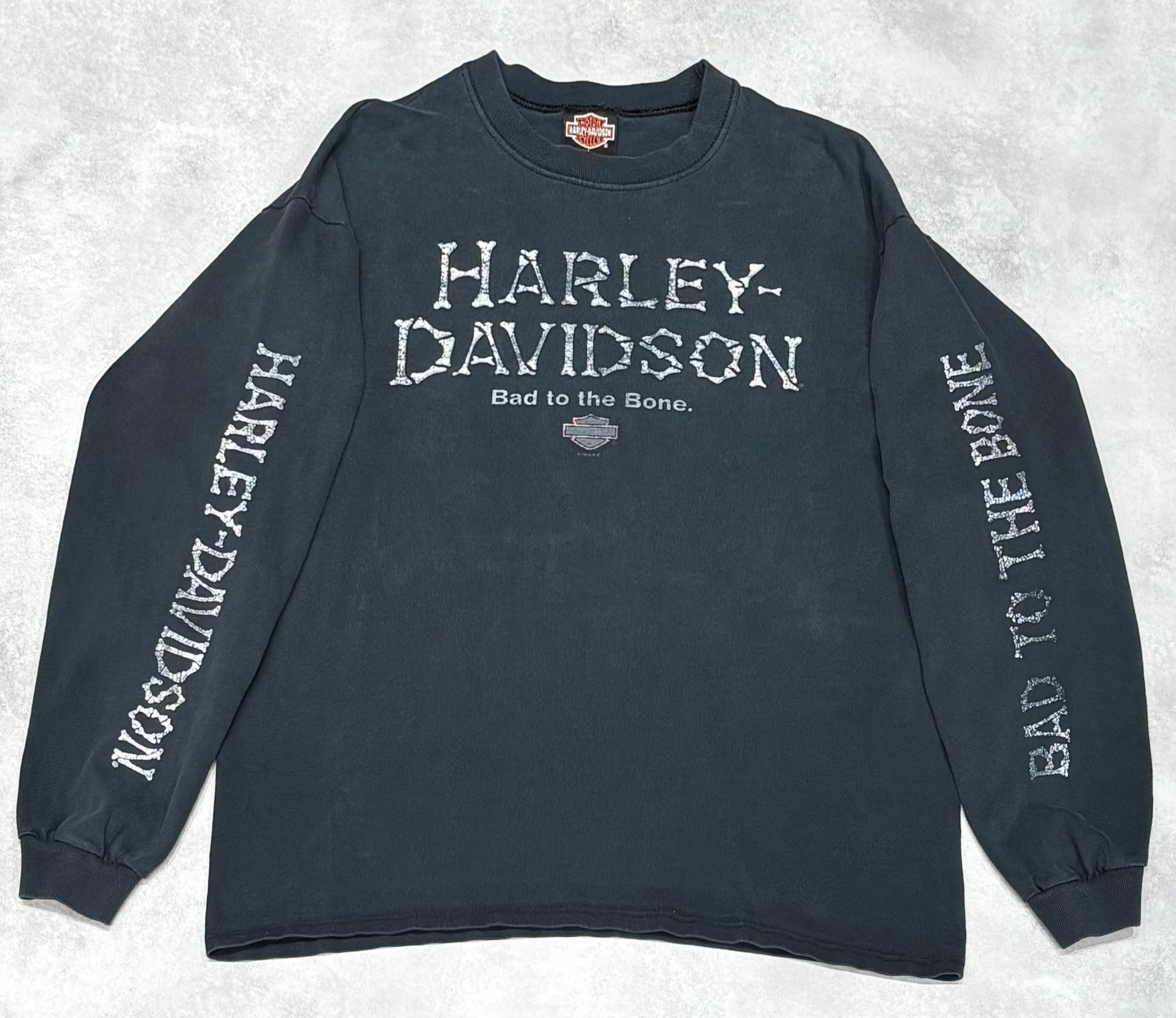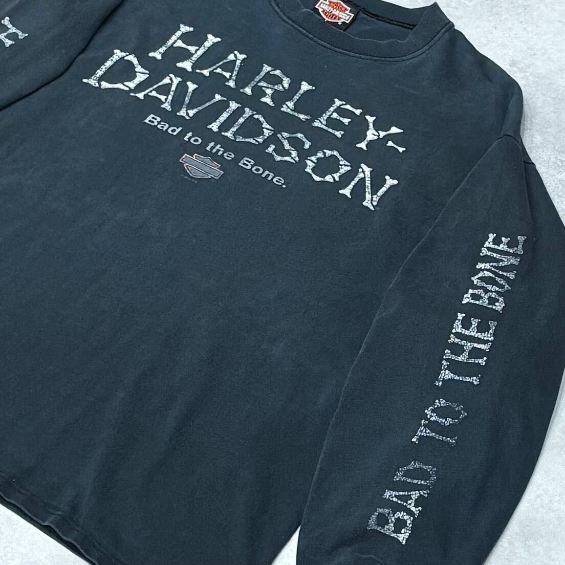 00's Harley-Davidson Bad to the Bone Long sleeve T-shirt LARGE ©️1998 Ocean City ハーレー ロンT ボーン 長袖 骨