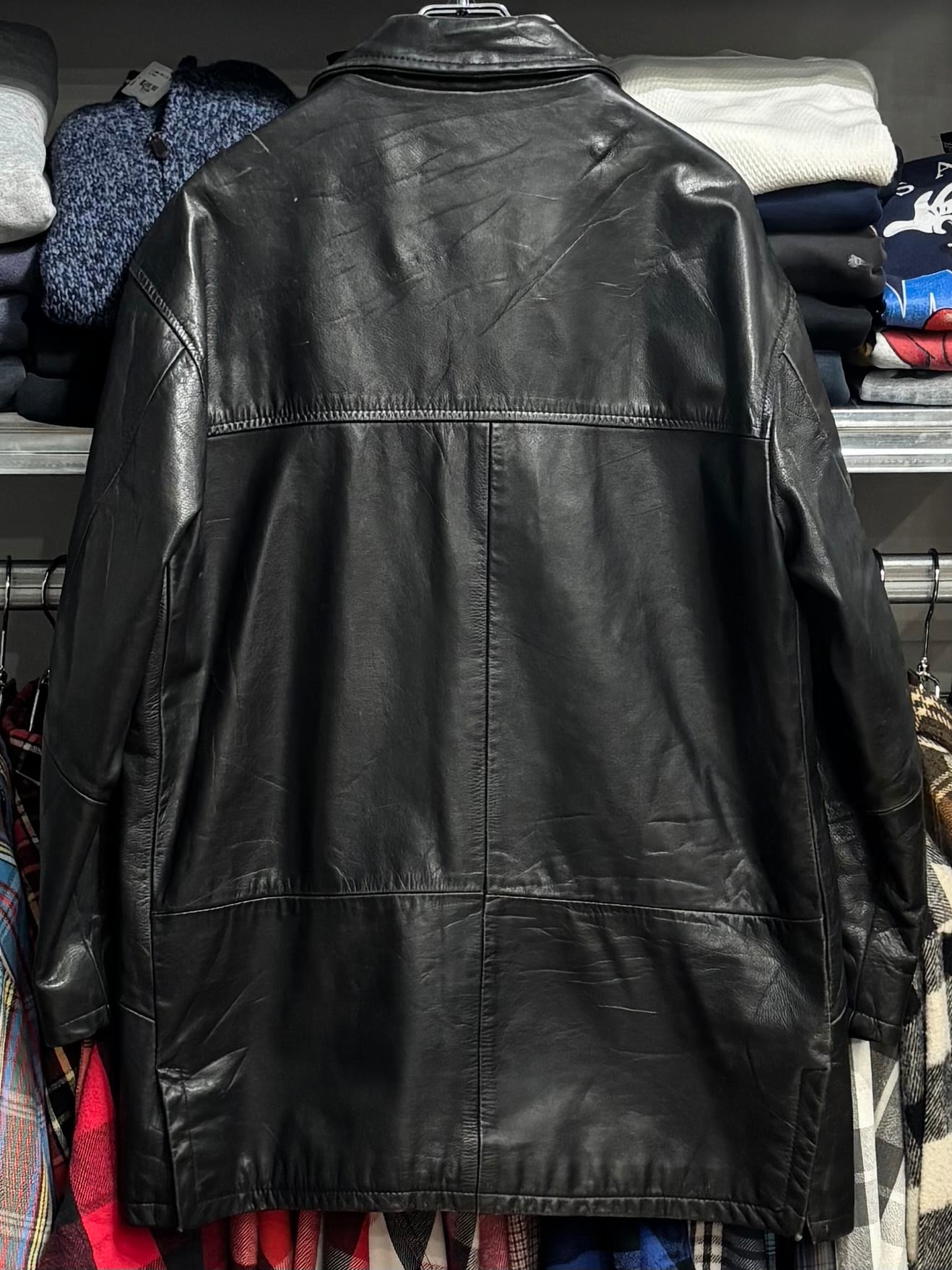 レザーカーコートは古着ですと
