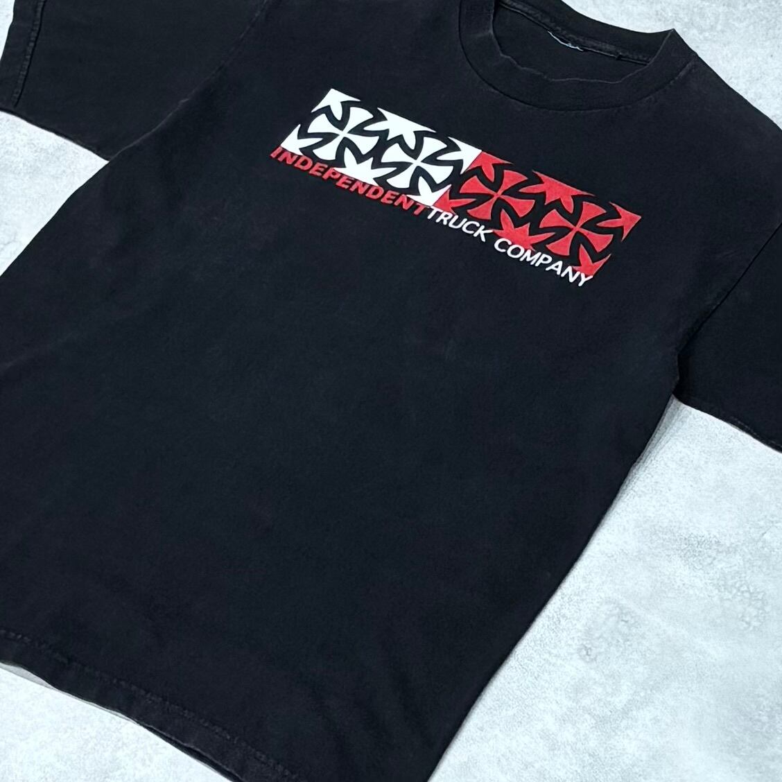 90-00's INDEPENDENT NHS Colortag T-Shirt 4-row iron cross Black インディペンデントNHS カラー 4連アイアンクロス 袖プリ 90年代 2784