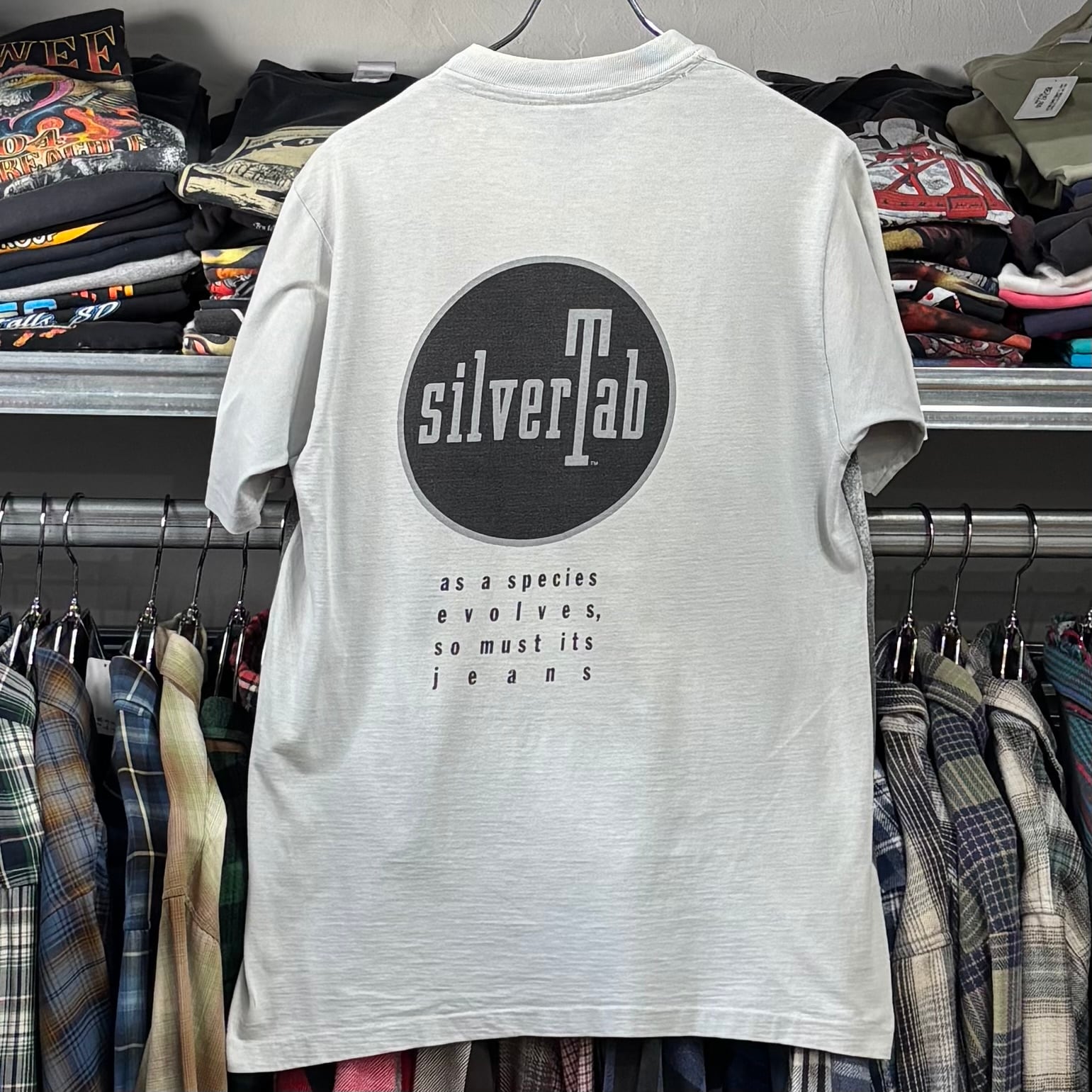 M 90's Levi's silvertab OVP T-Shirt madein USA 90年代 リーバイス シルバータブ tシャツ 大判フォトプリント ライトグレー 3024