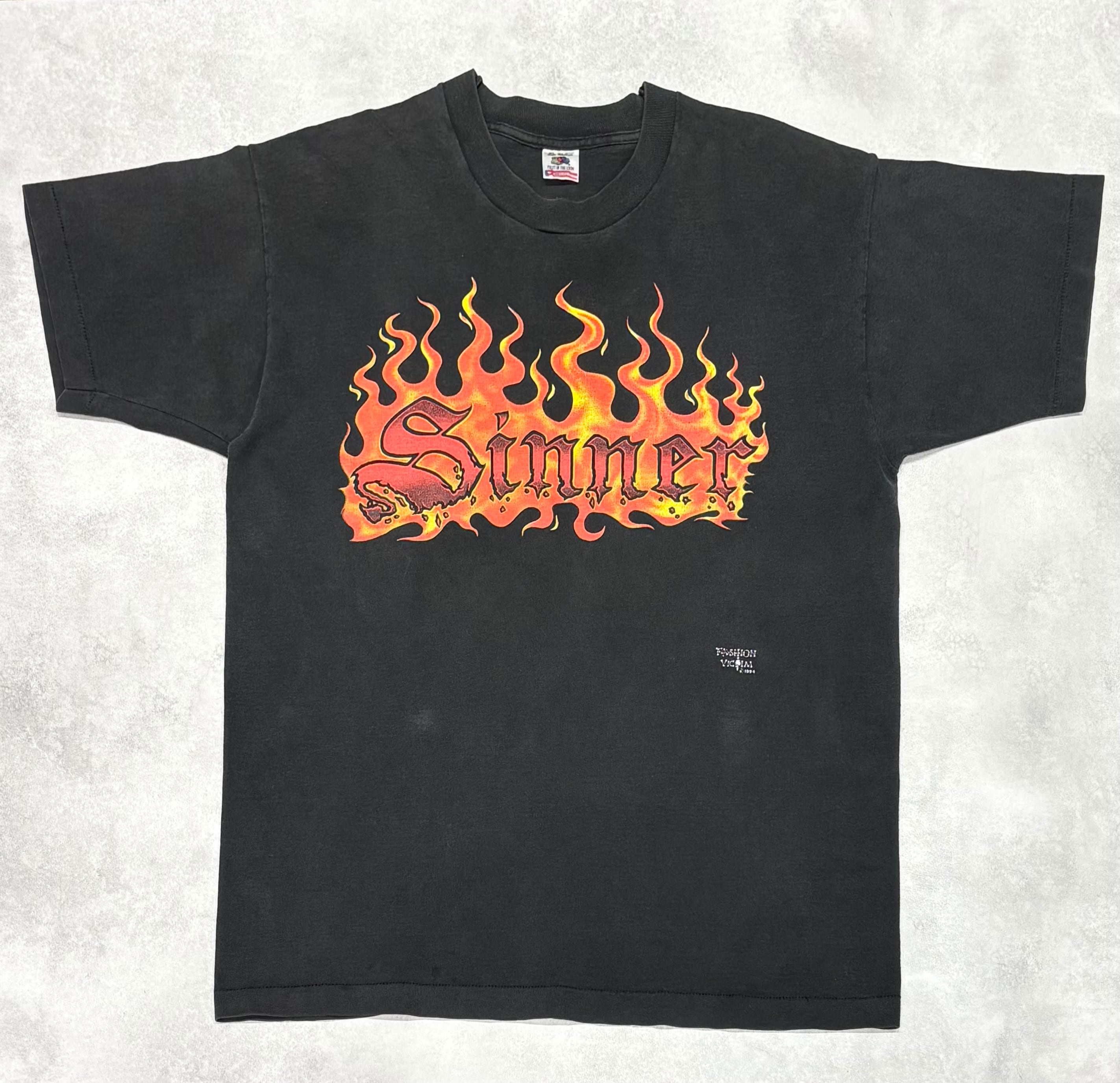 90's FASHION VICTIM Sinner Flame FRUIT OF THE LOOM XL ©️1994 90年代 ファッションビクティム フルーツ フレイム 罪人