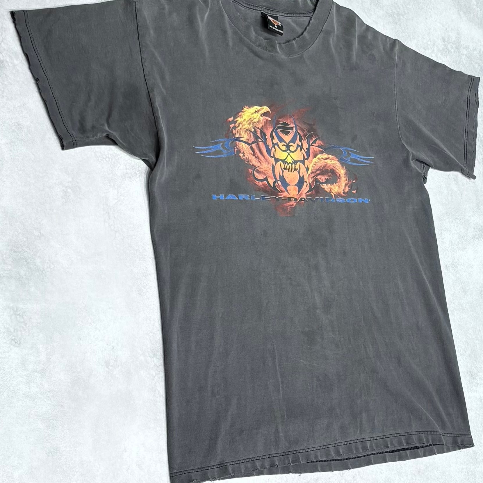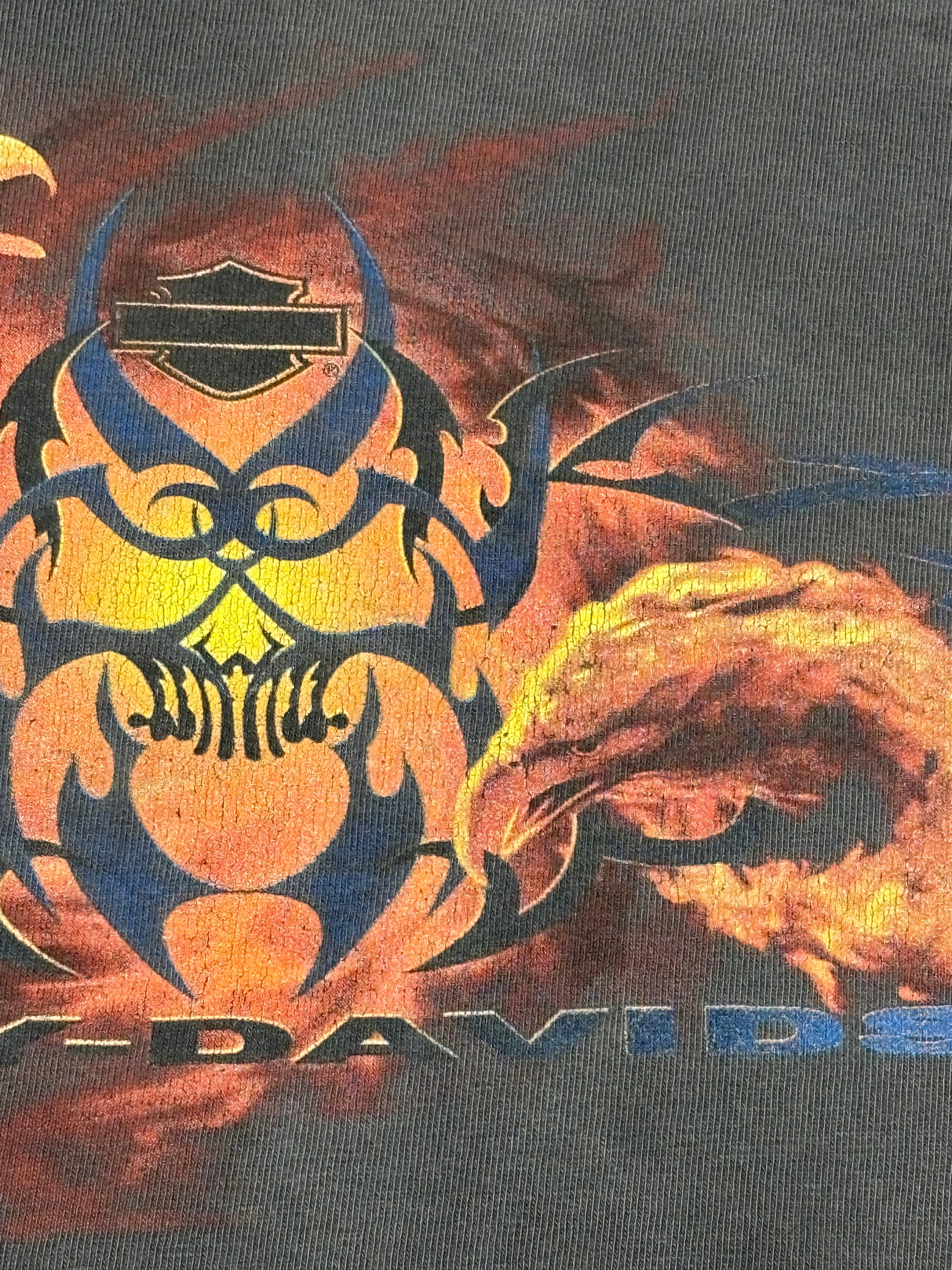 00's Harley-Davidson SNAKE FLAME EAGLE GOOD FADE T-Shirt XL ハーレー スネーク イーグル フレイム