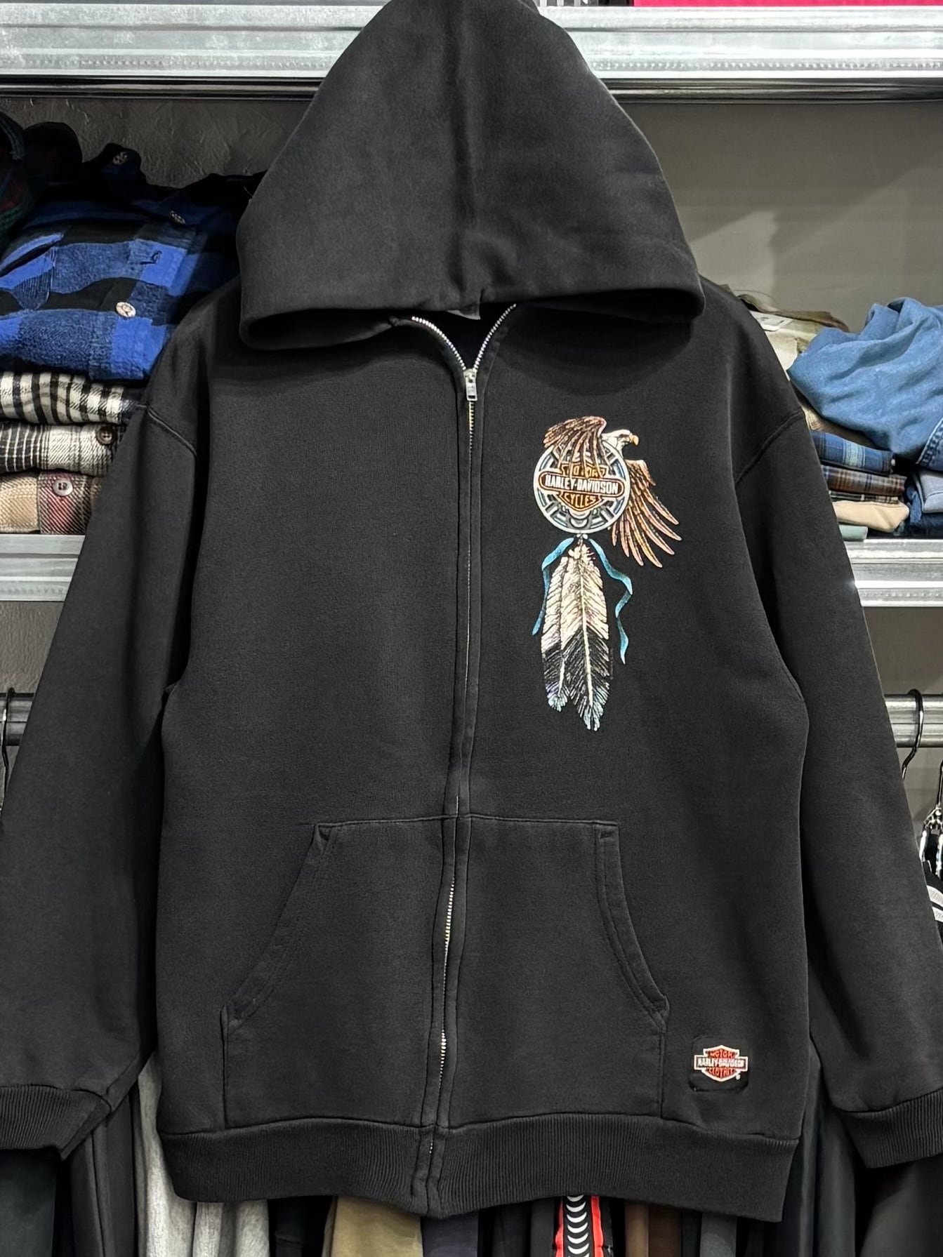 90's Harley-Davidson Hanes LARGE Zip Hoodie Dream catcher Eagle Feather BLACK HILLS 90年代 ハーレー ジップパーカー イーグル ヘインズ