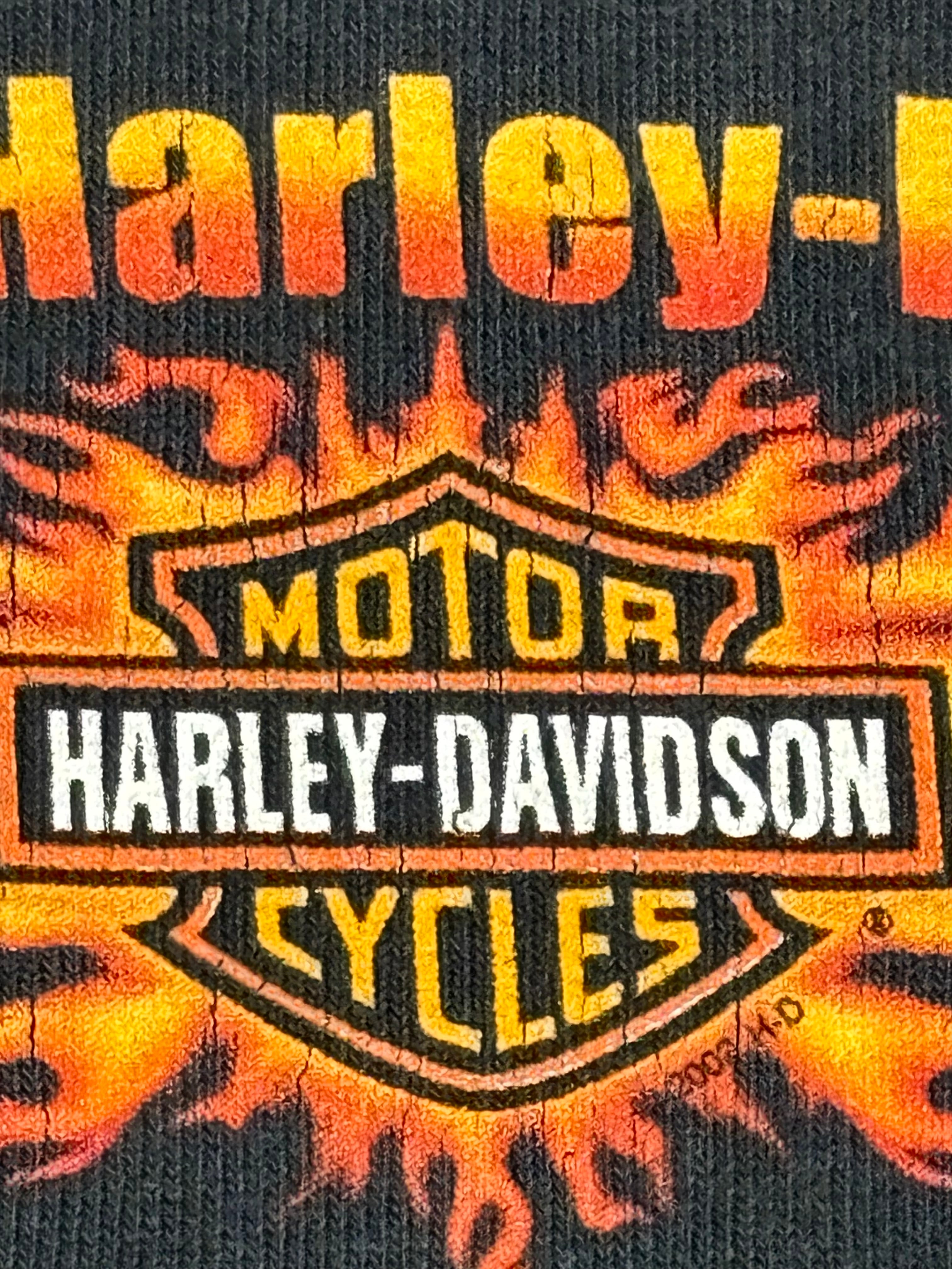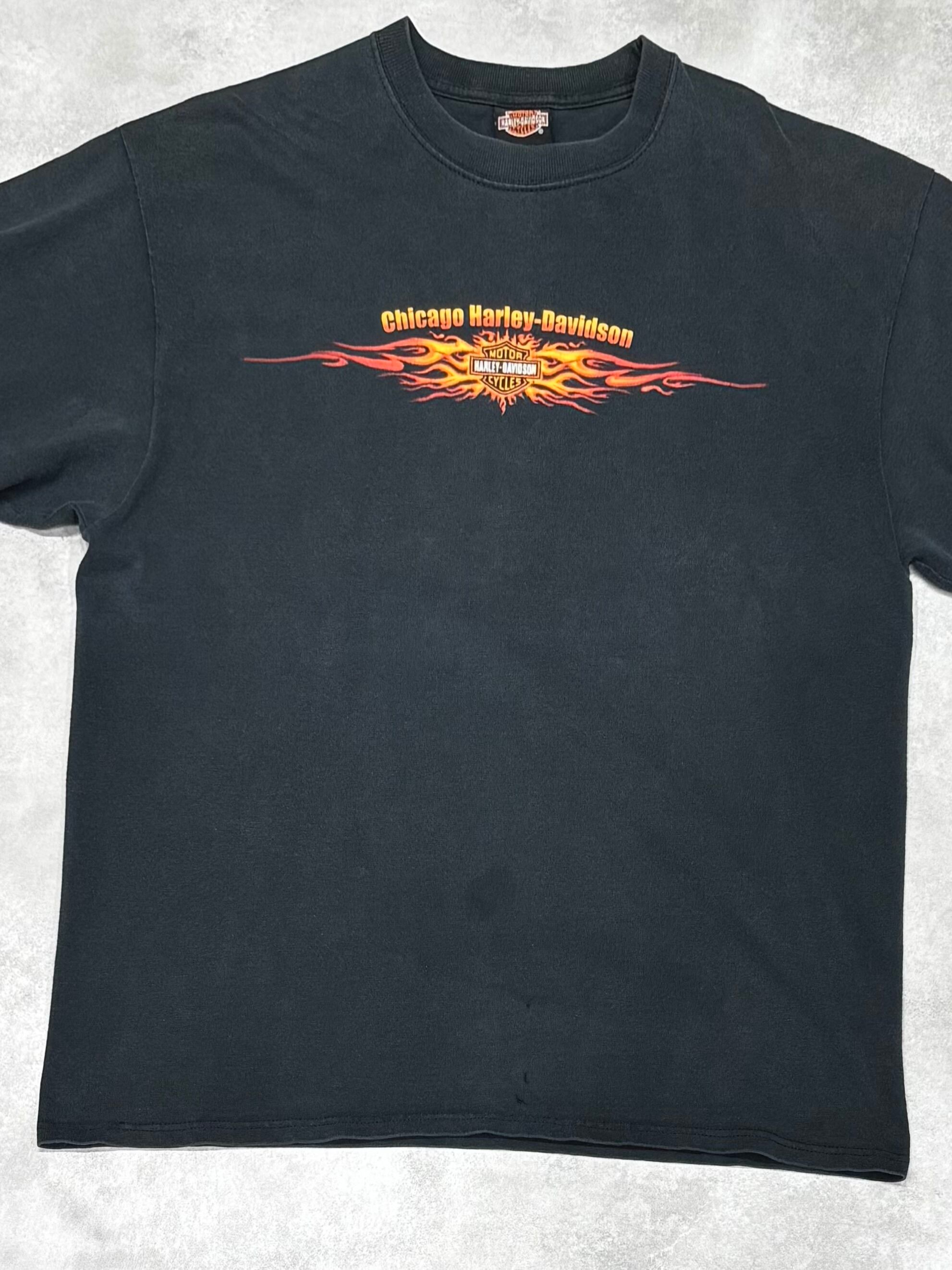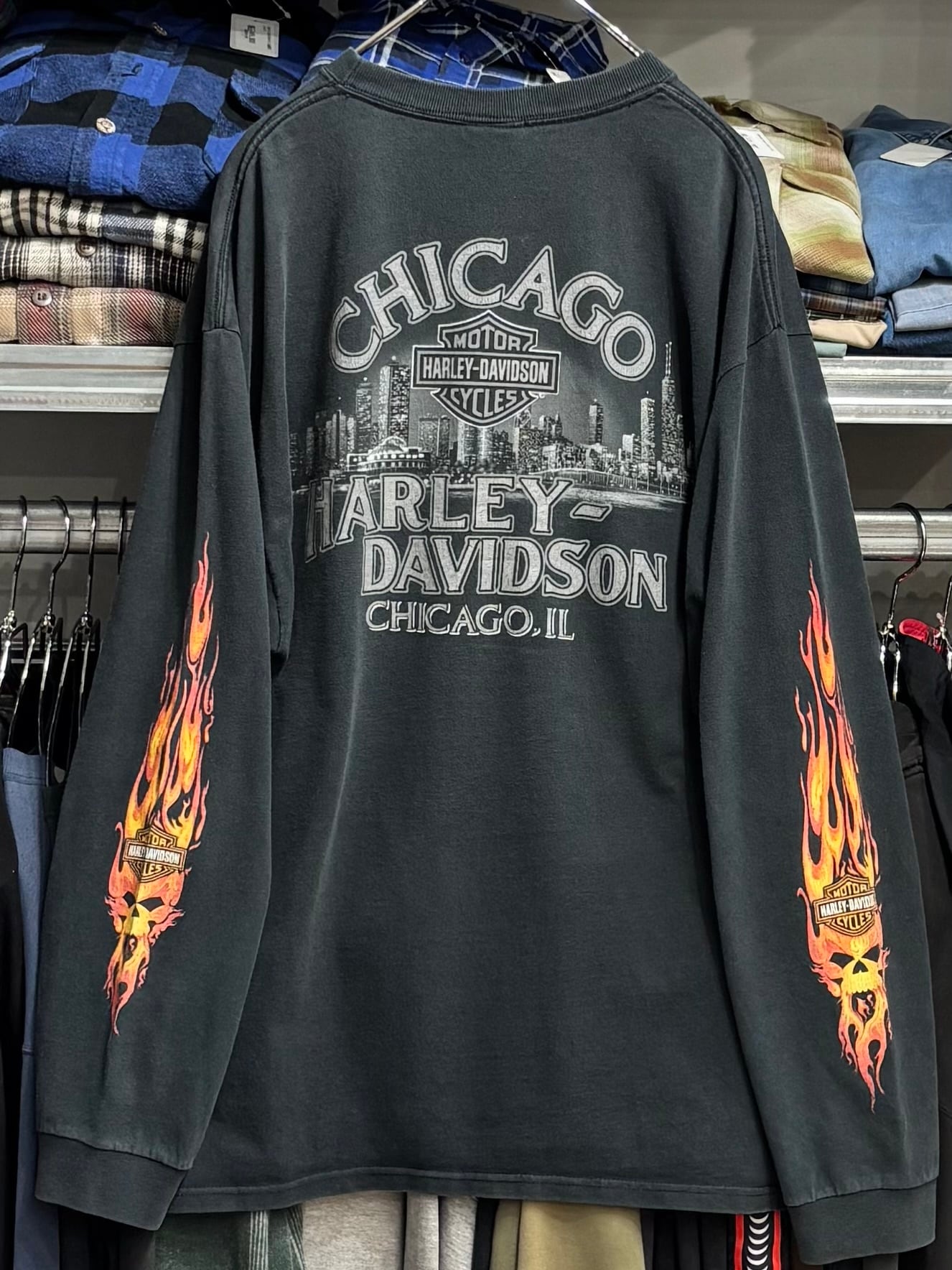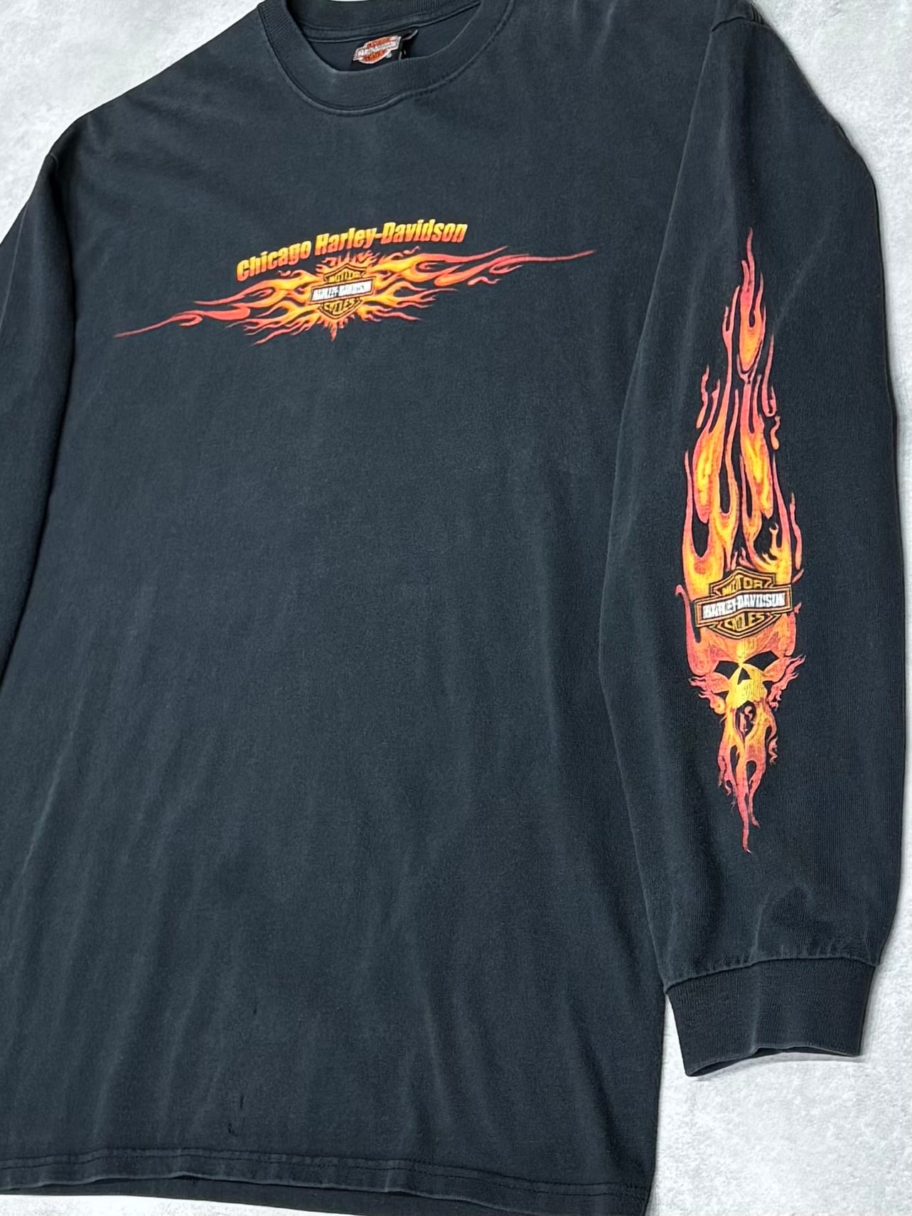 00's Harley-Davidson Skull Flames LS T-Shirt XL Chicago ハーレー スカル フレイム 長袖 ロンT