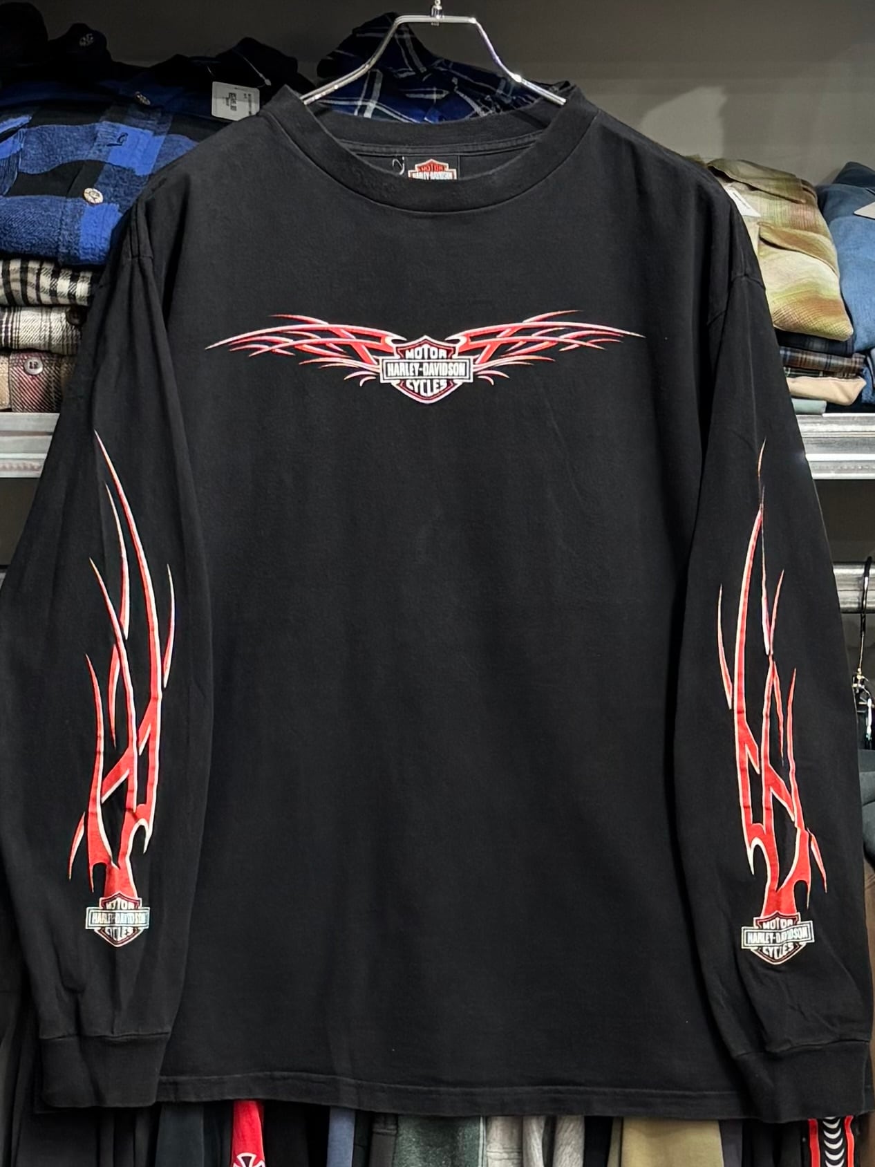 00's Harley-Davidson Tribal Flames LS T-Shirt XL CANADA ハーレー トライバル フレイム 長袖 ロンT