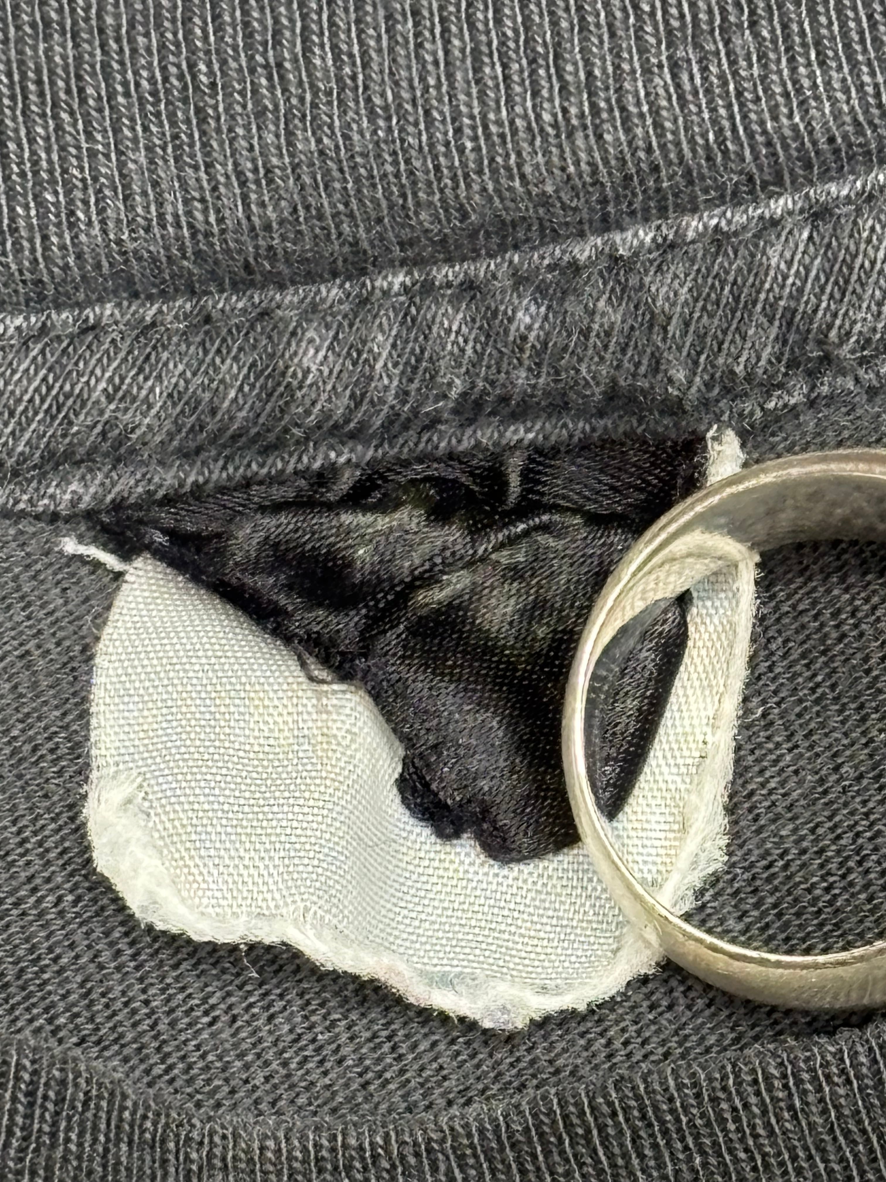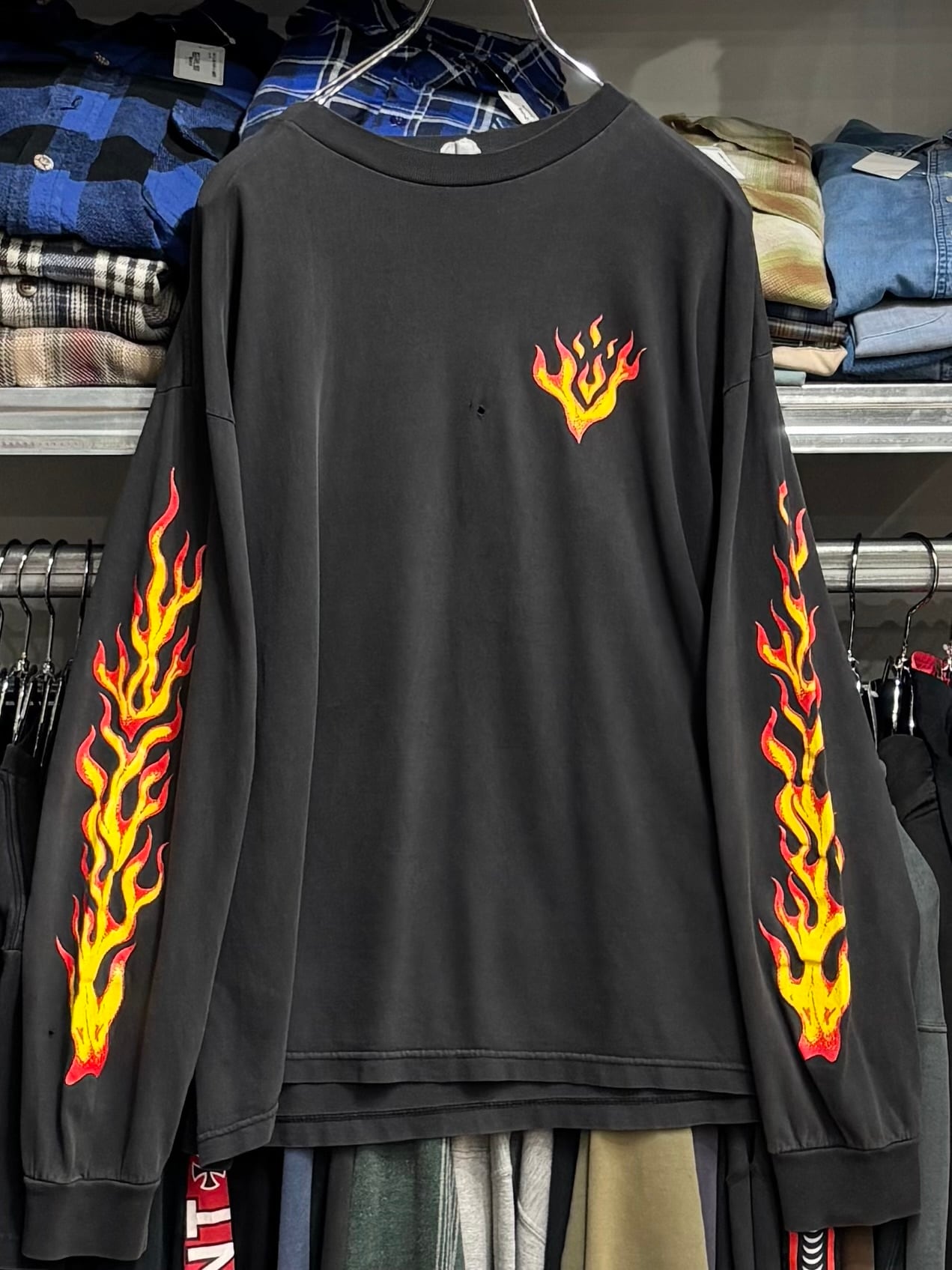 状態:全体的に古着特有の使用感など有ります。胸付近ホール、右袖プリ付近ホール、