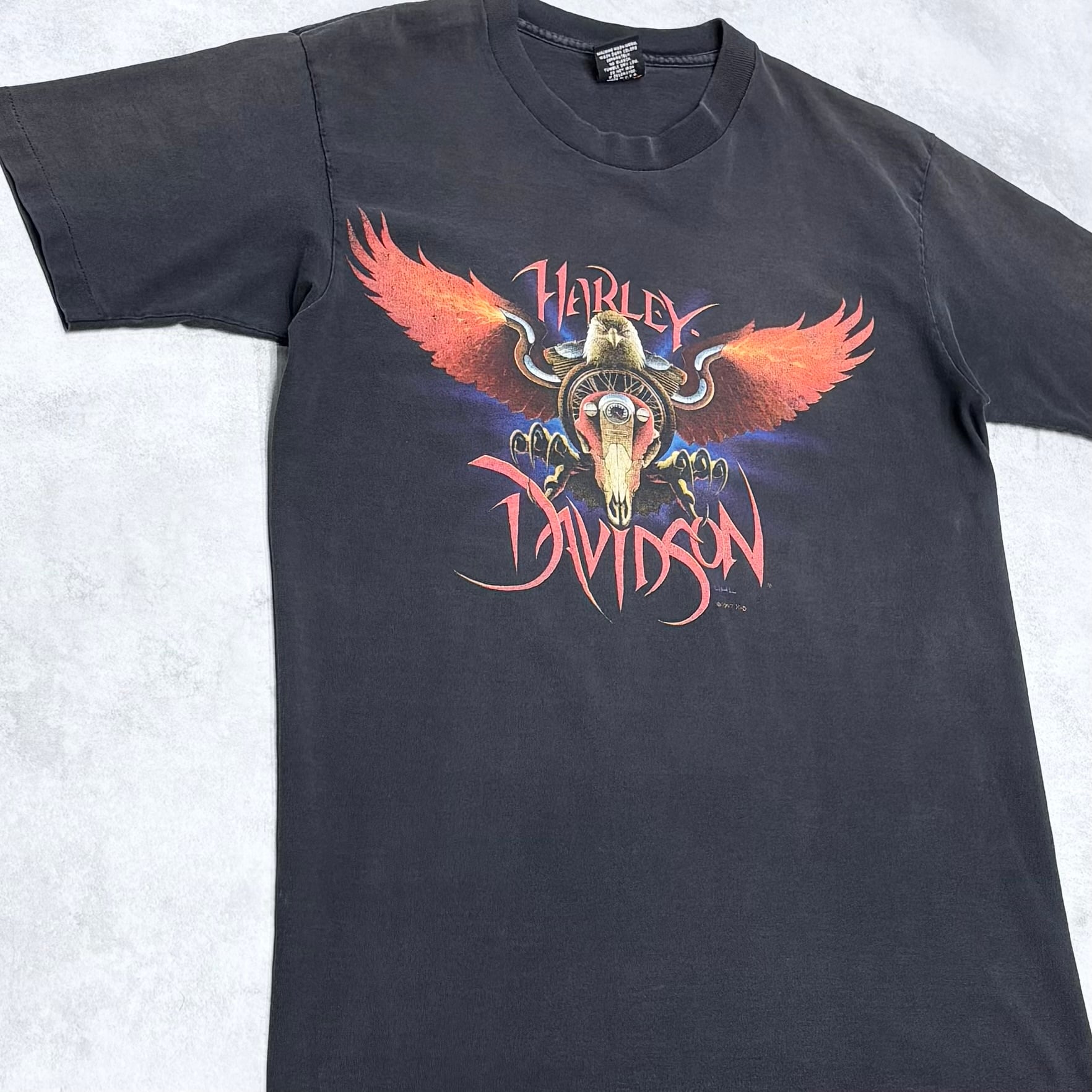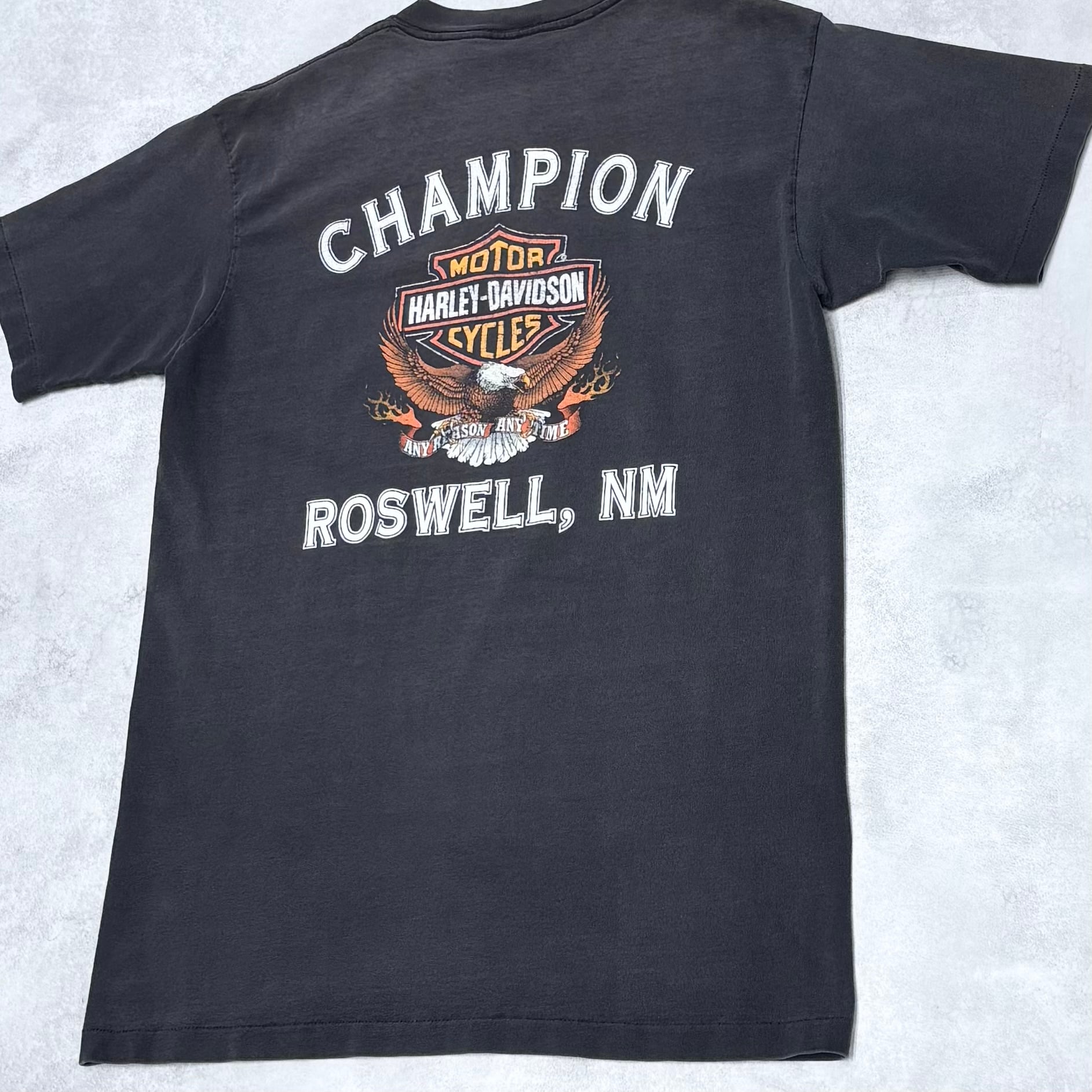 90's Harley-Davidson CHAMPION ROSWELL EAGLE Buffalo Skull T-Shirt