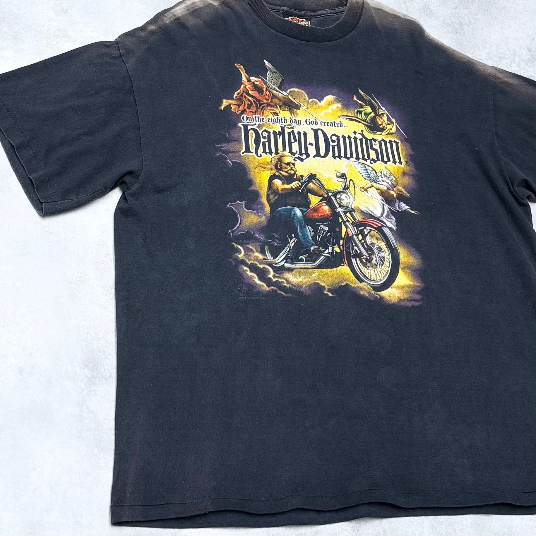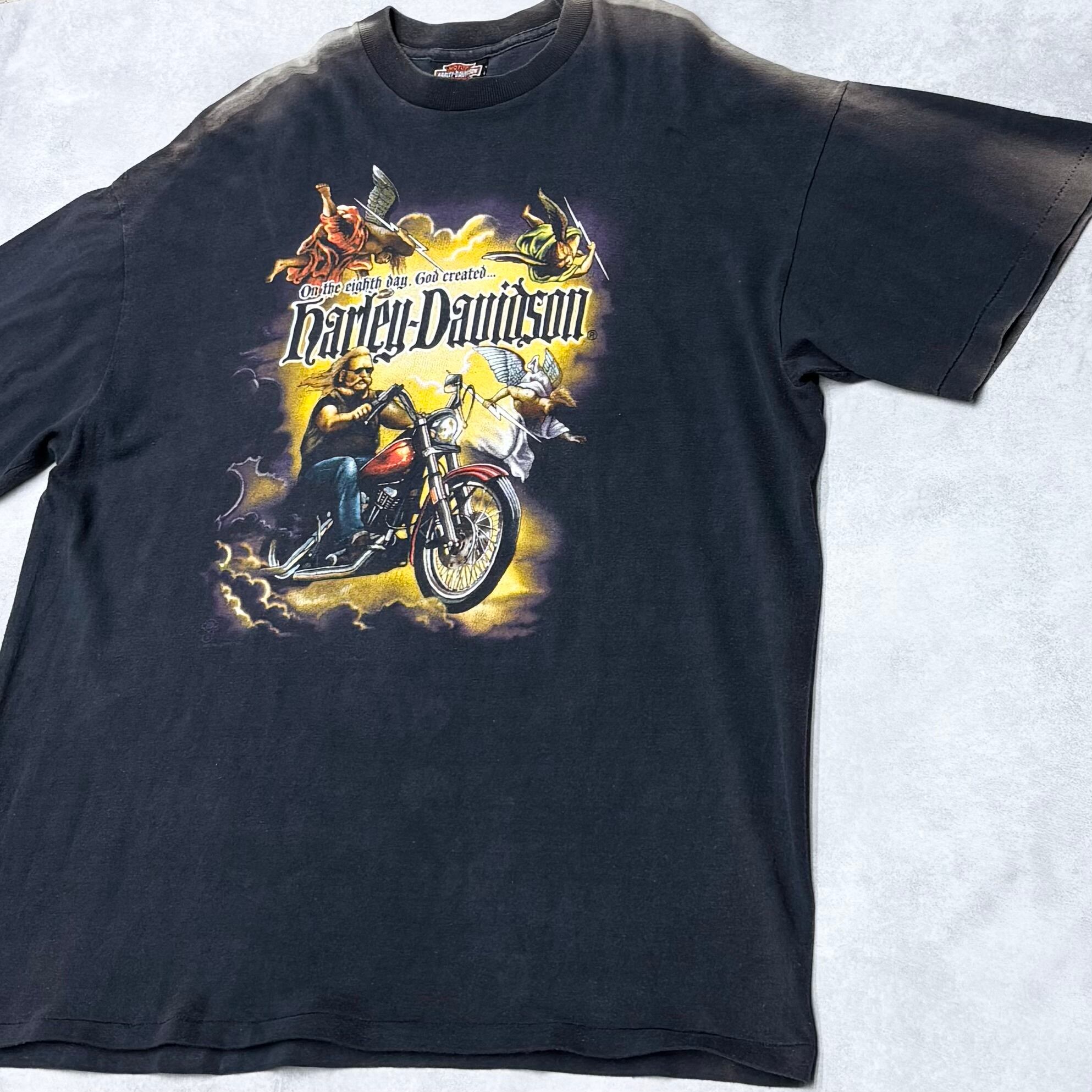 90's Harley-Davidson On the eighth day, God created Harley-Davidson T-Shirt ©️1987 90年代 ハーレー 天使 tシャツ