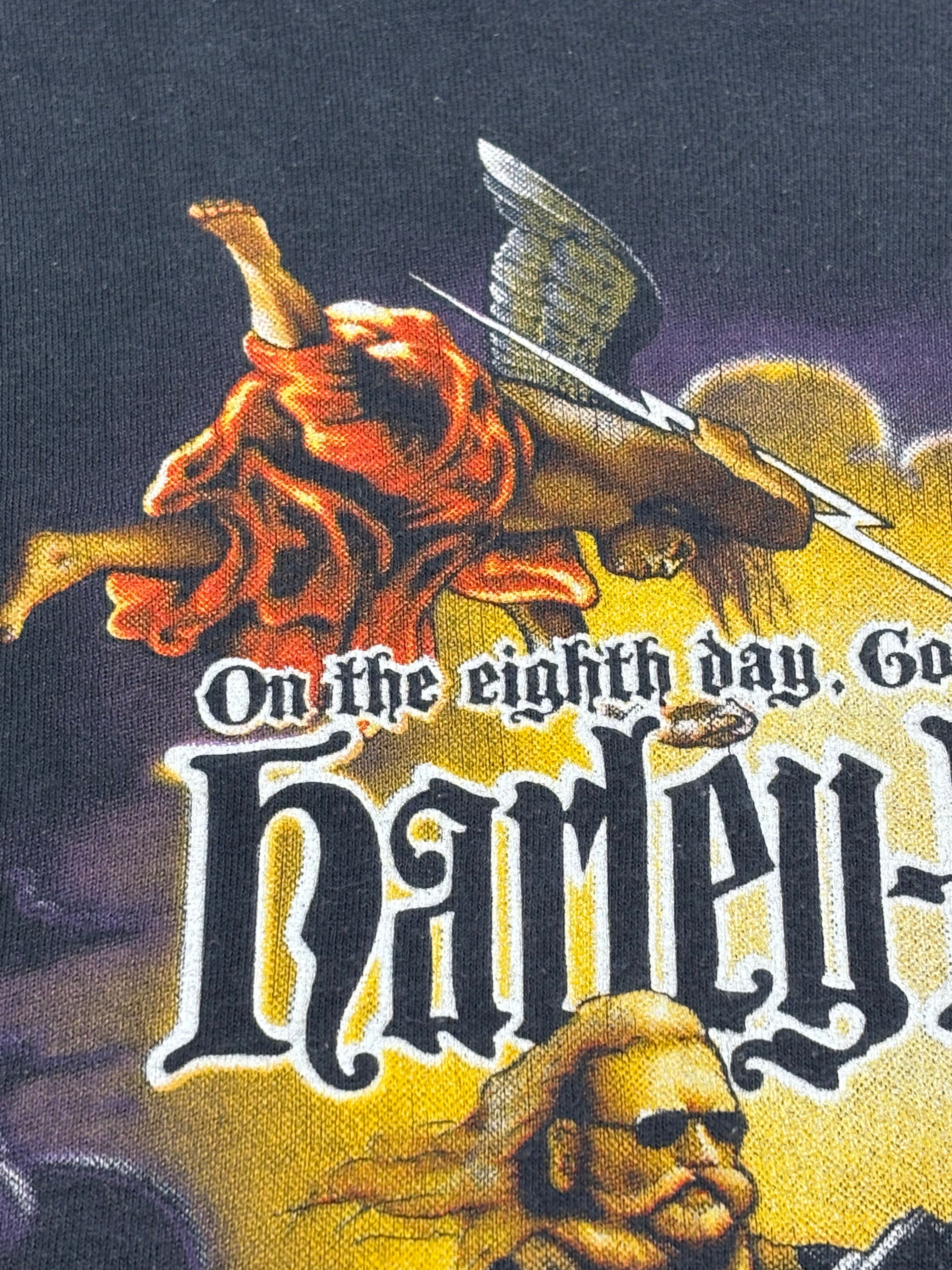 アートワーク的には"神は8日目に、ハーレーを創った"という聖書をもじった有名な