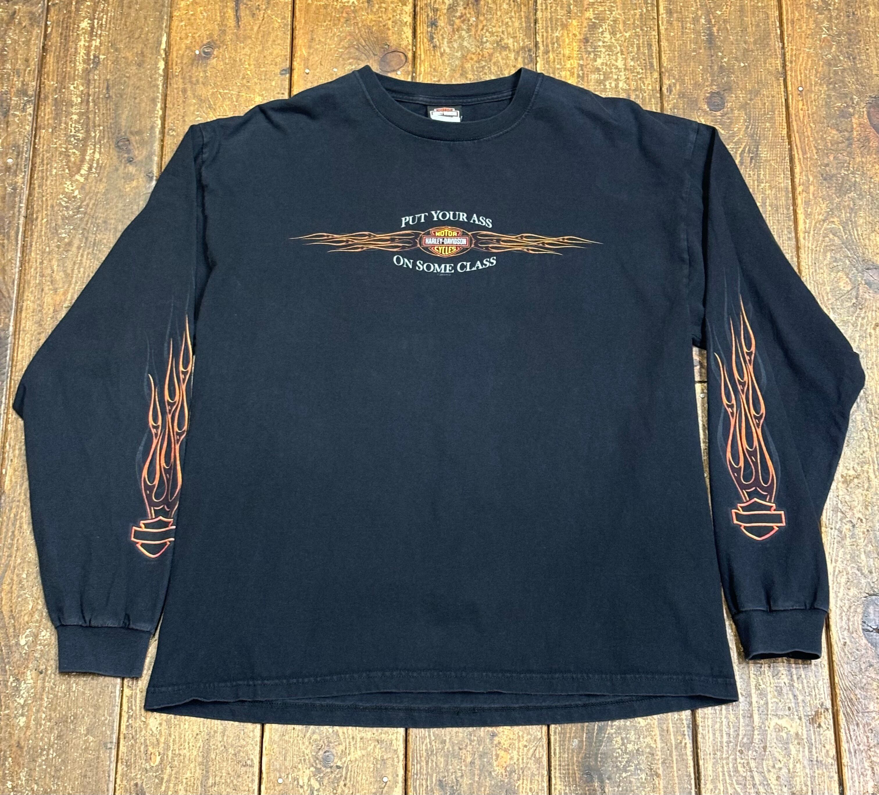 Harley-Davidson Flame ROCK HILL Hanes USA XL ハーレー 長袖 ロンt フレイム
